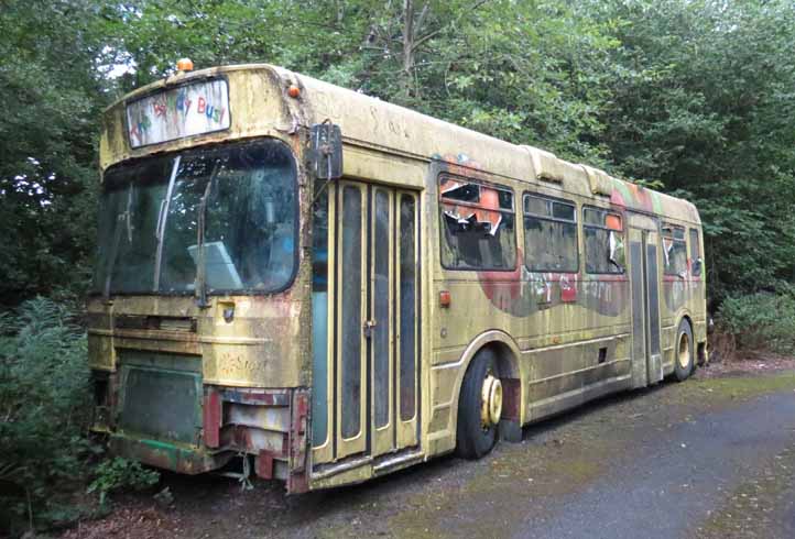 An ignominious end for one of BA's Leyland-DAB artics. The bus is seen at the West of England Transport Collection in Winkleigh bereft of its rear end and bearing the colours of its last use as a Playbus. The rear end was at Winkleigh as was at least one other Leyland-DAB, so whether it will arise phoenix-like again in BA colours remains to be seen.
