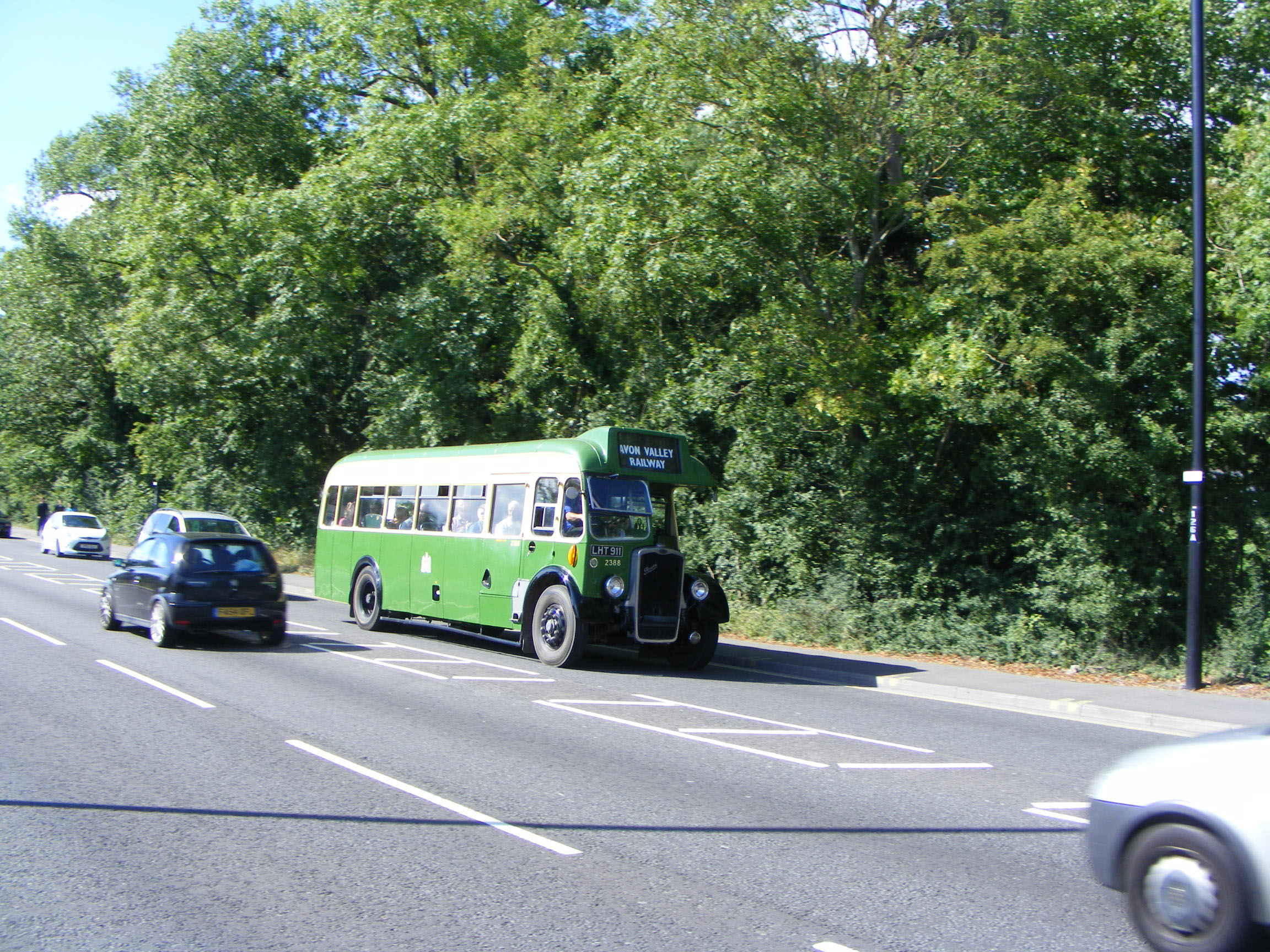 Offering free rides at the Bristol Bus Rally in August 2013 was Wilts & Dorset 279 (EMW284), a 1949 Bristol L6B with a heavily rebuilt Beadle body in 1957, it is being overtaken by 1948 Bristol Omnibus L6B 2388 (LHT911). This bus has also had body alterations, gaining a 1937 Brislington Bus Works body to replace its original ECW body in 1958. The BBW body was from Bristol JO5G 2074 (EHT536) and dual door, but was modified to rear entrance on refitting. |
