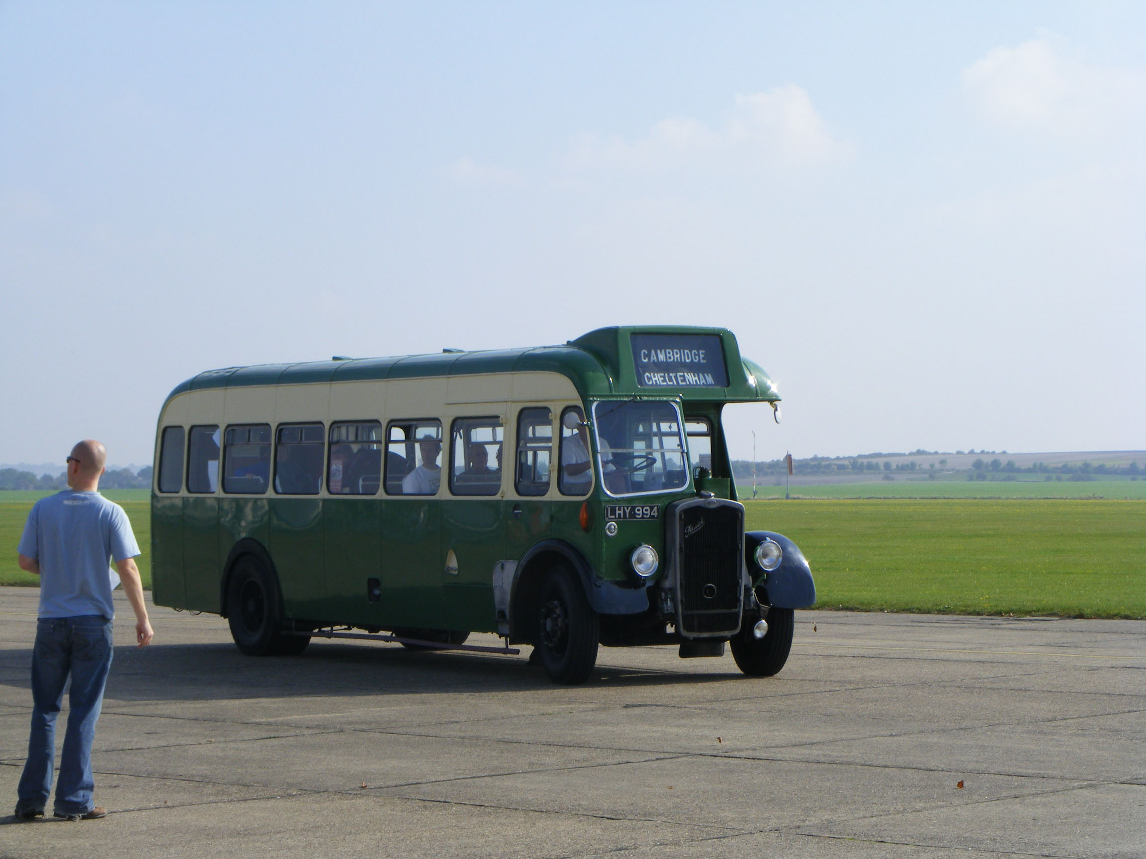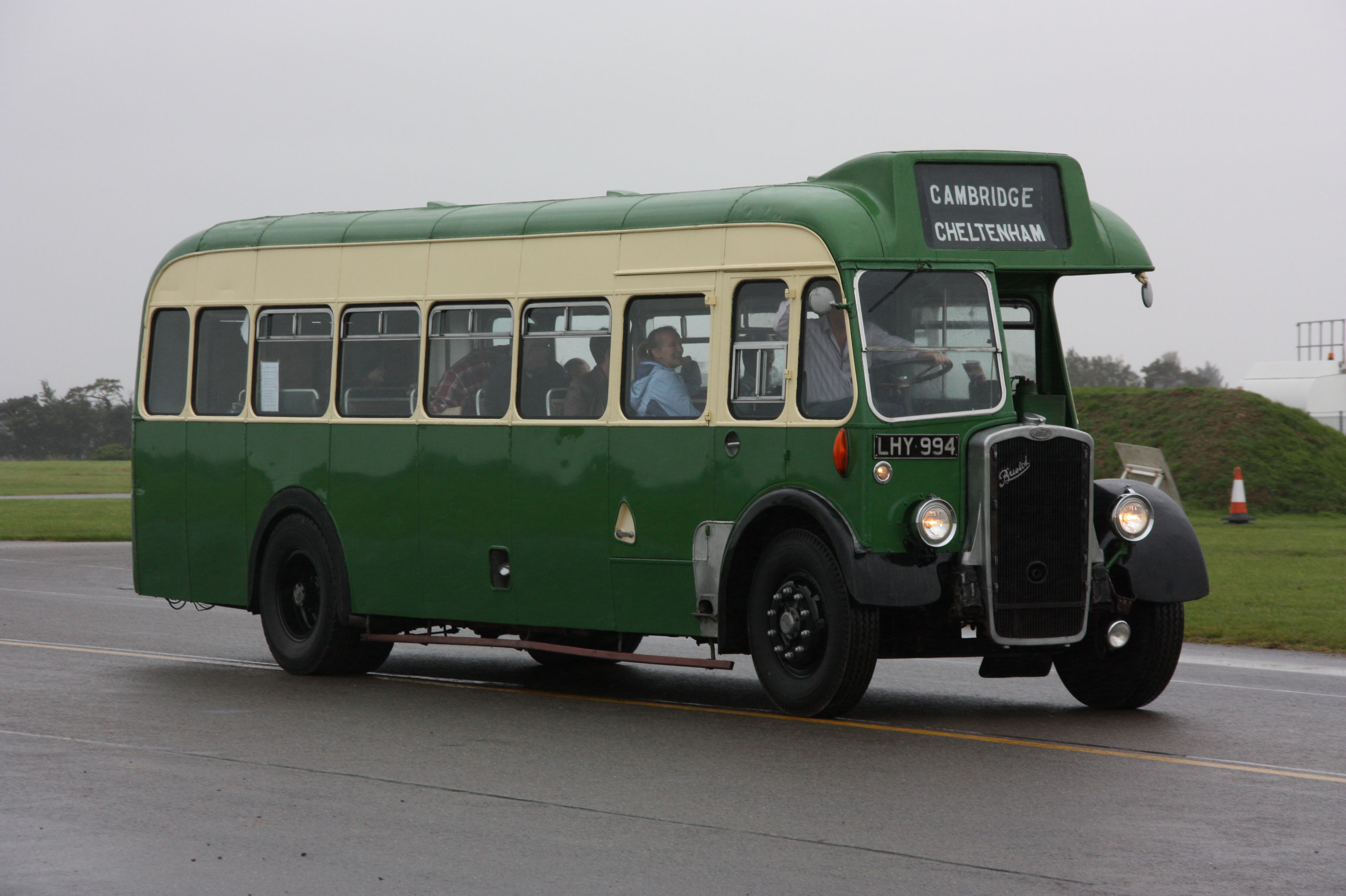 At SHOWBUS international in 2008, the centenary of the Bristol manufacturing company was celebrated and 2447 (LHY994) - with appropraite blinds - tail-ended the procession of Bristols from Trumpington Park & Ride to Duxford. It is being guided by long standing SHOWBUS team member, Charlie Nicholson. |