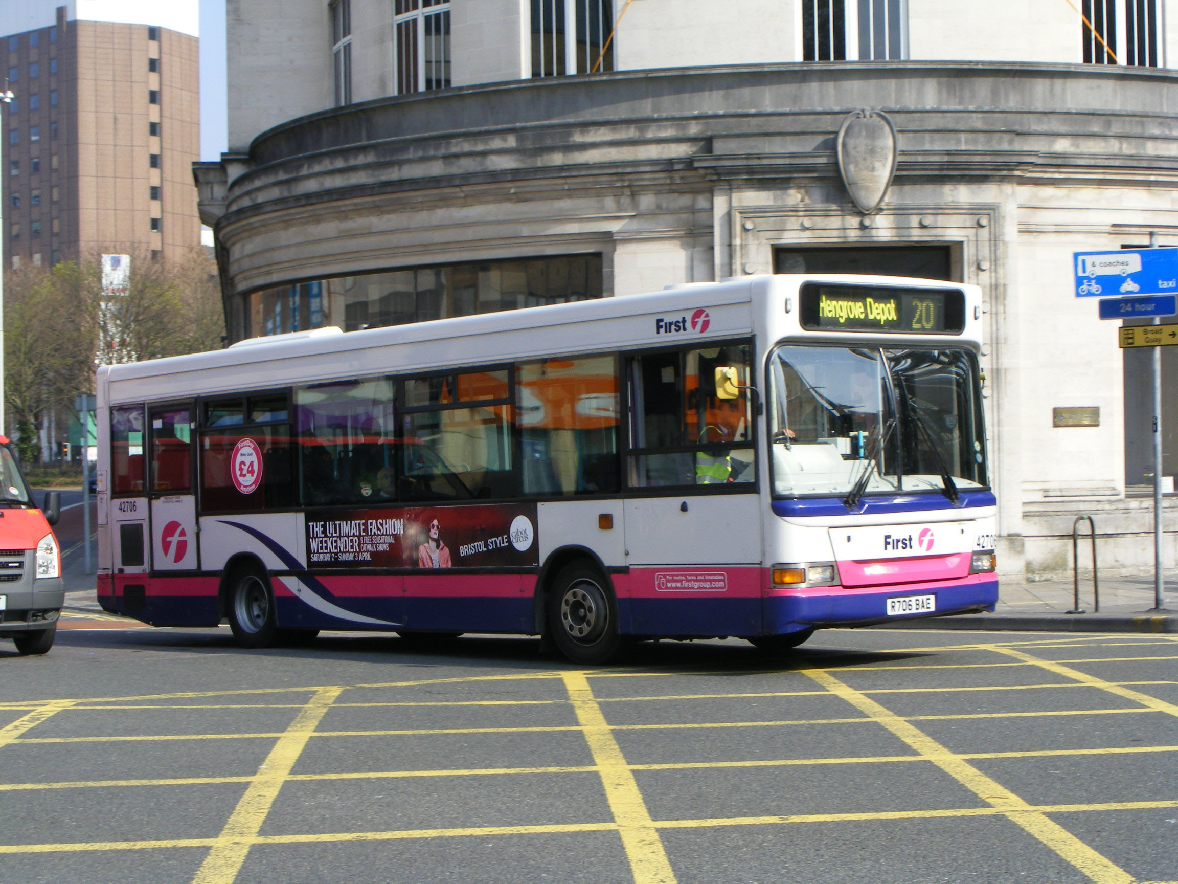 Another bus leaving the city centre for Hengrove depot was Plaxton Pointer MPD Dennis Dart 42706 (R706BAE).