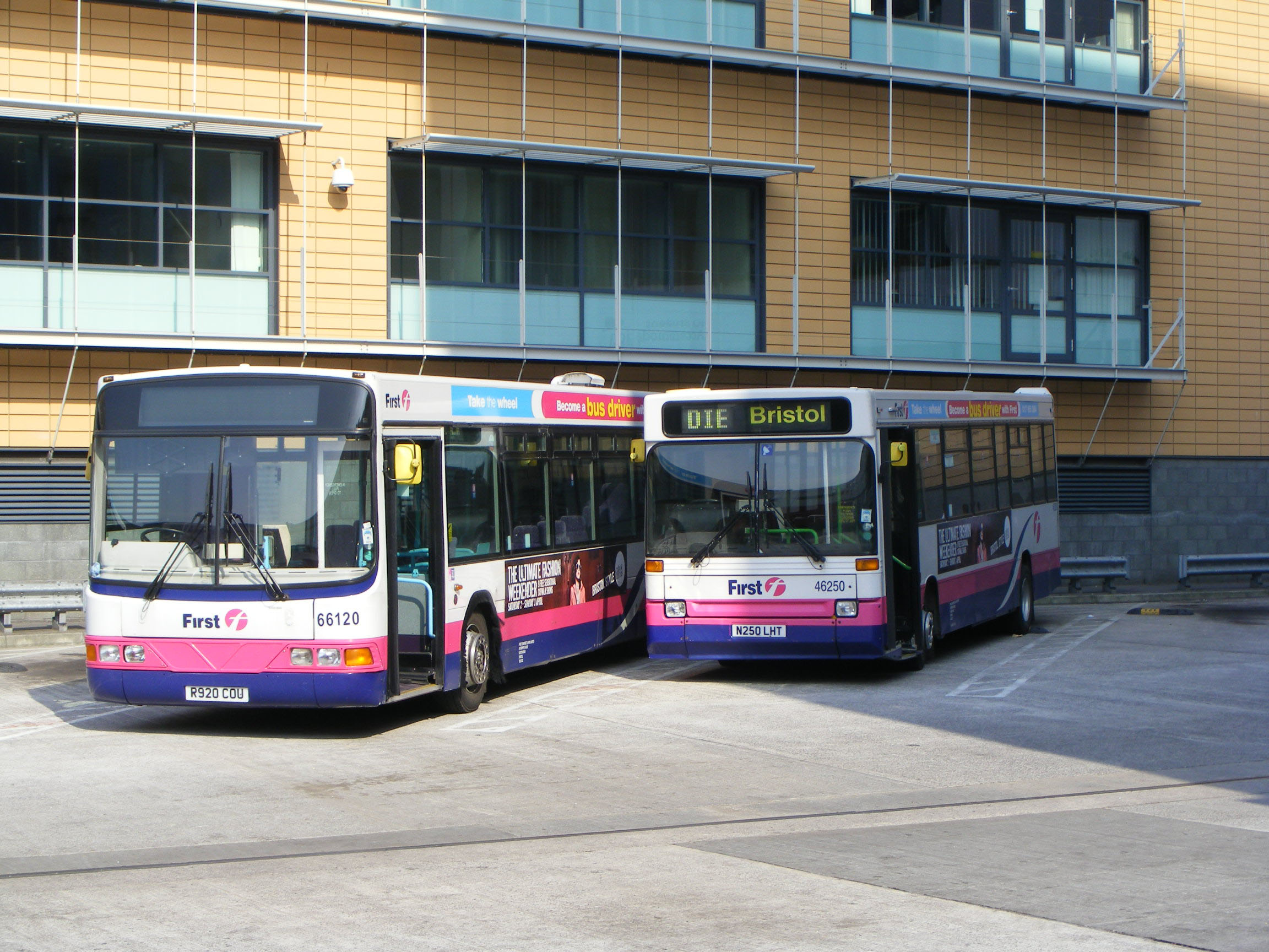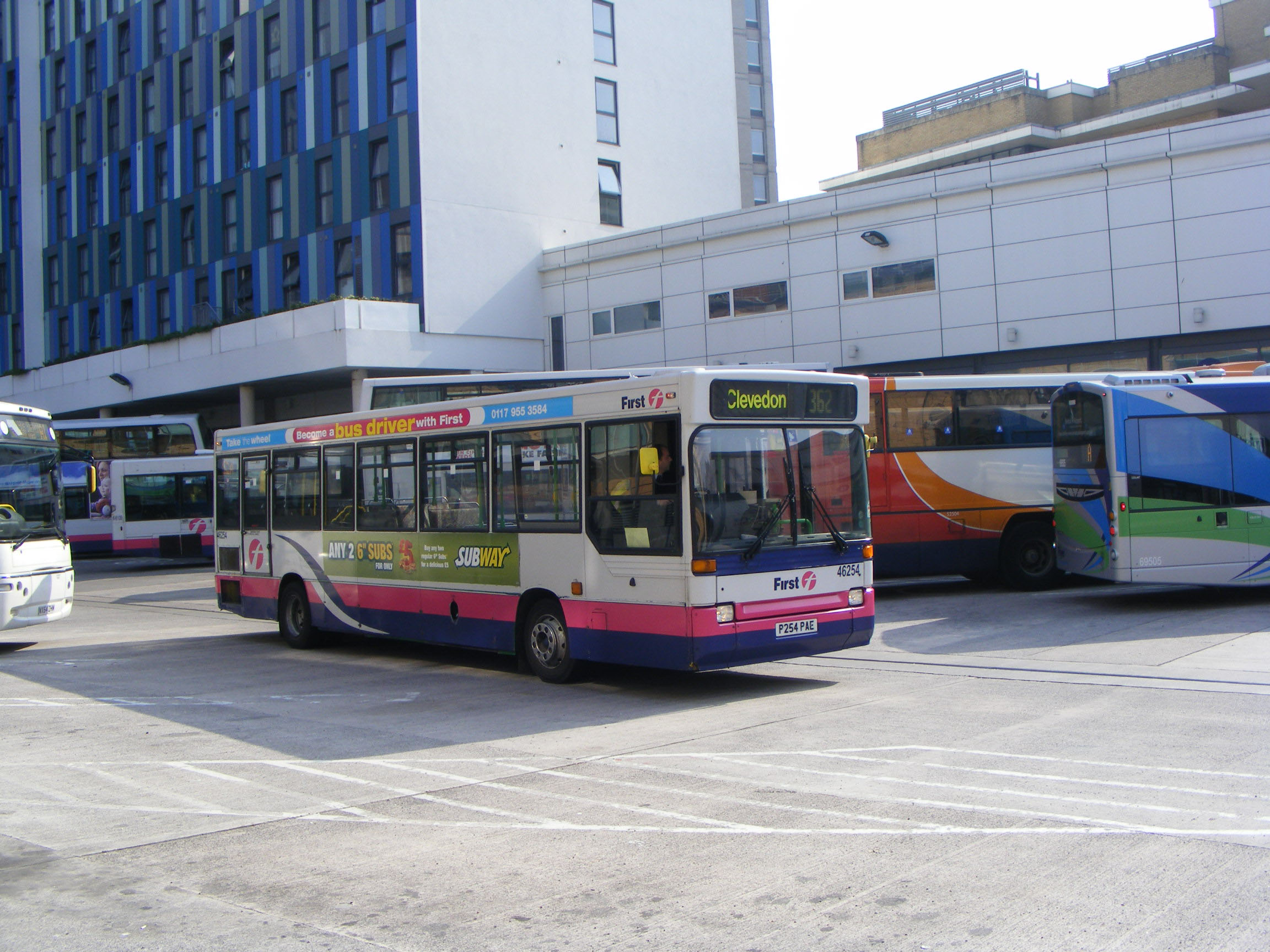 Another step entrance Dart was seen that day in Marlborough Street Bus Station, 46254 (P254PAE). The combined bus and coach station dating from 1958 was rebuilt and reopened in 2006. The hitherto "black hole" was opened to the elemants and the depot maintenance section dispensed with. The individual service stands are shuttered from the prevailing weather, a saftey feature as well as staving off the worst of the weather. No such luck for crews who have to cross the exposed tarmac to access vehicles on layover. |