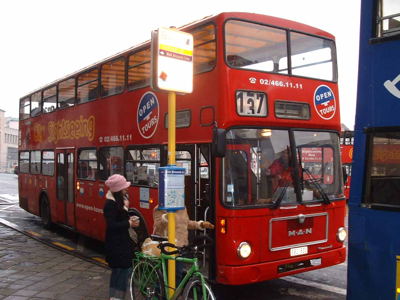 Central Station is the main departure point for the Brussels hop-on hop-off City Sightseeing Tour. This ex Berlin MAN decker, registered SBC900, is awaiting departure on December 27th 2005.