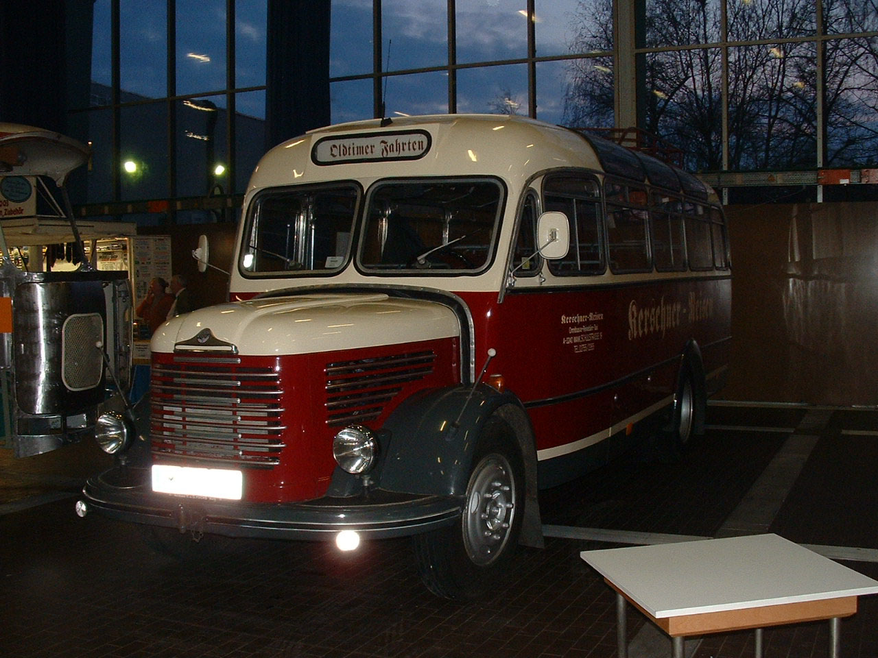 Taking pride of place at the 2004 Stuttgart Retro Classics display in the Auwaerter Hall was this 1954 Bussing 4000T with coachwork by Ernst Auwaerter. With the Neoplan Auwaerter company sold to MAN, it was left to the Ernst Auwaerter company to celebrate the 150th Anniversary of the founding of the Auwaerter engineering company. The firm's foundation was in agricultural equipment.