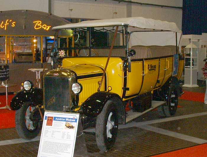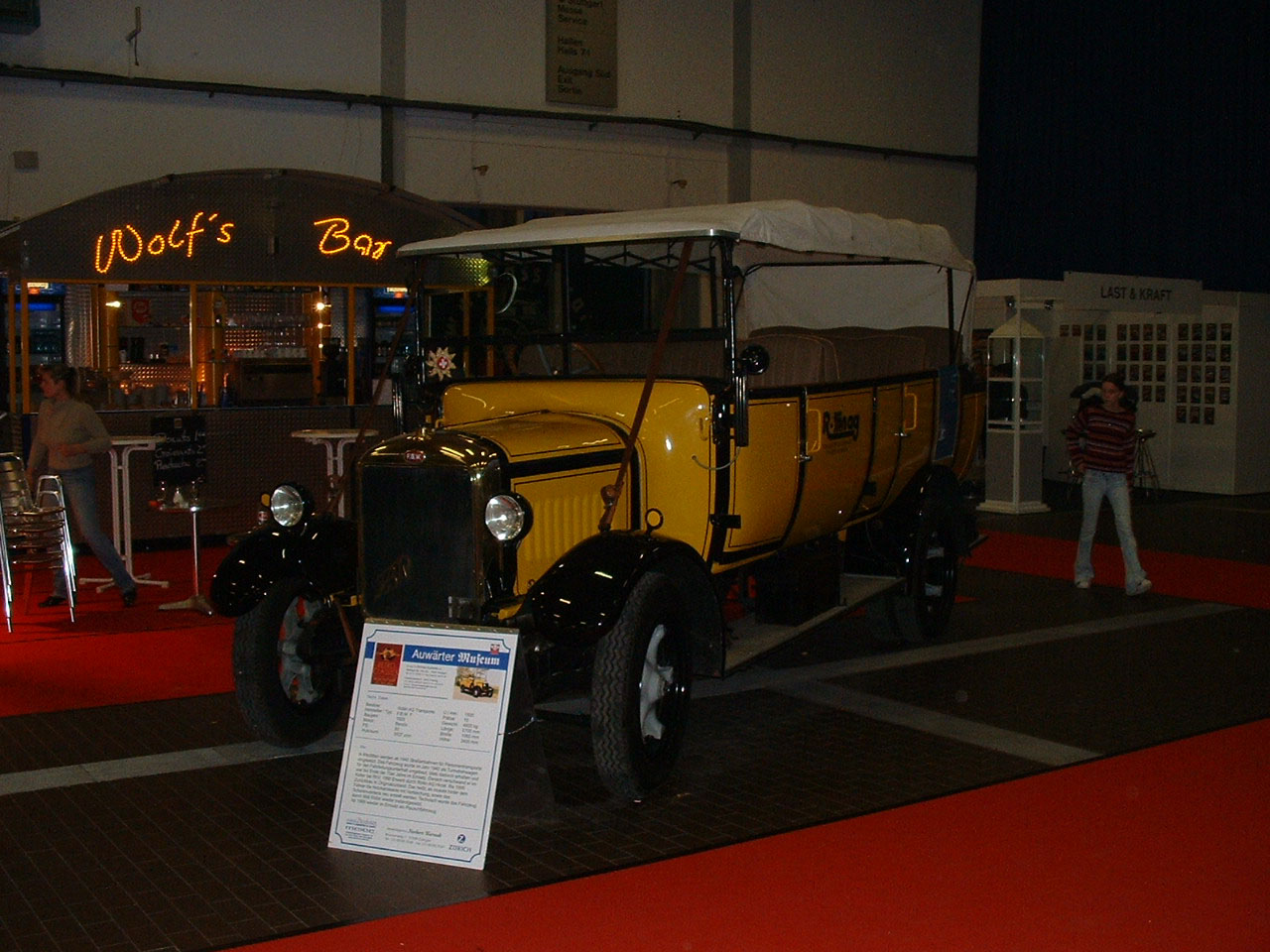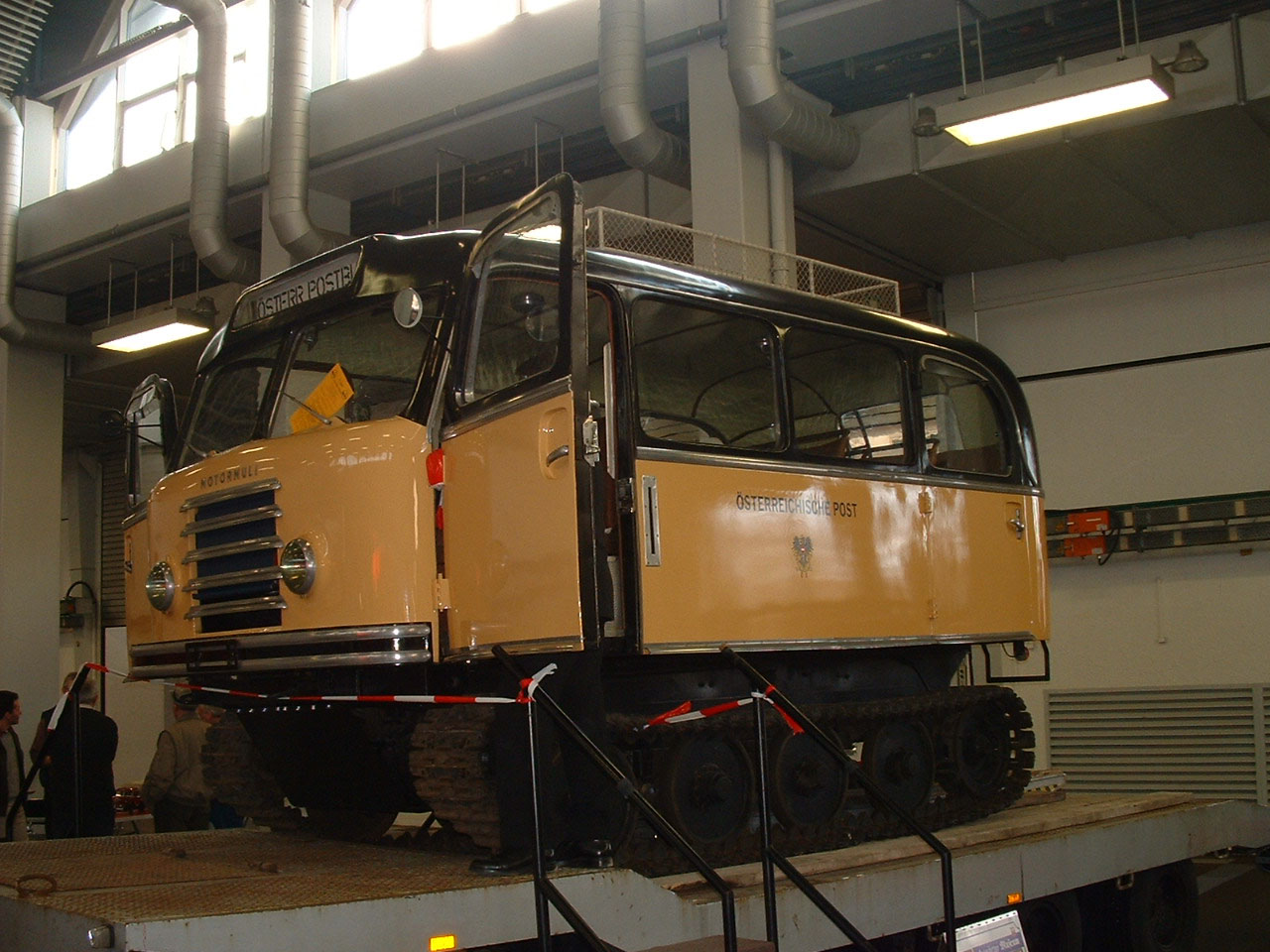 A real head turner at Retro Classics was this 1951 Sonderanfertigung Scuster, Hacker & Co Aufbau Lohen. The tracked vehicle was neatly displayed in an elevated position. It is powered by a Steyr engine, seats 12 and was used by the Austrian Post Office.
