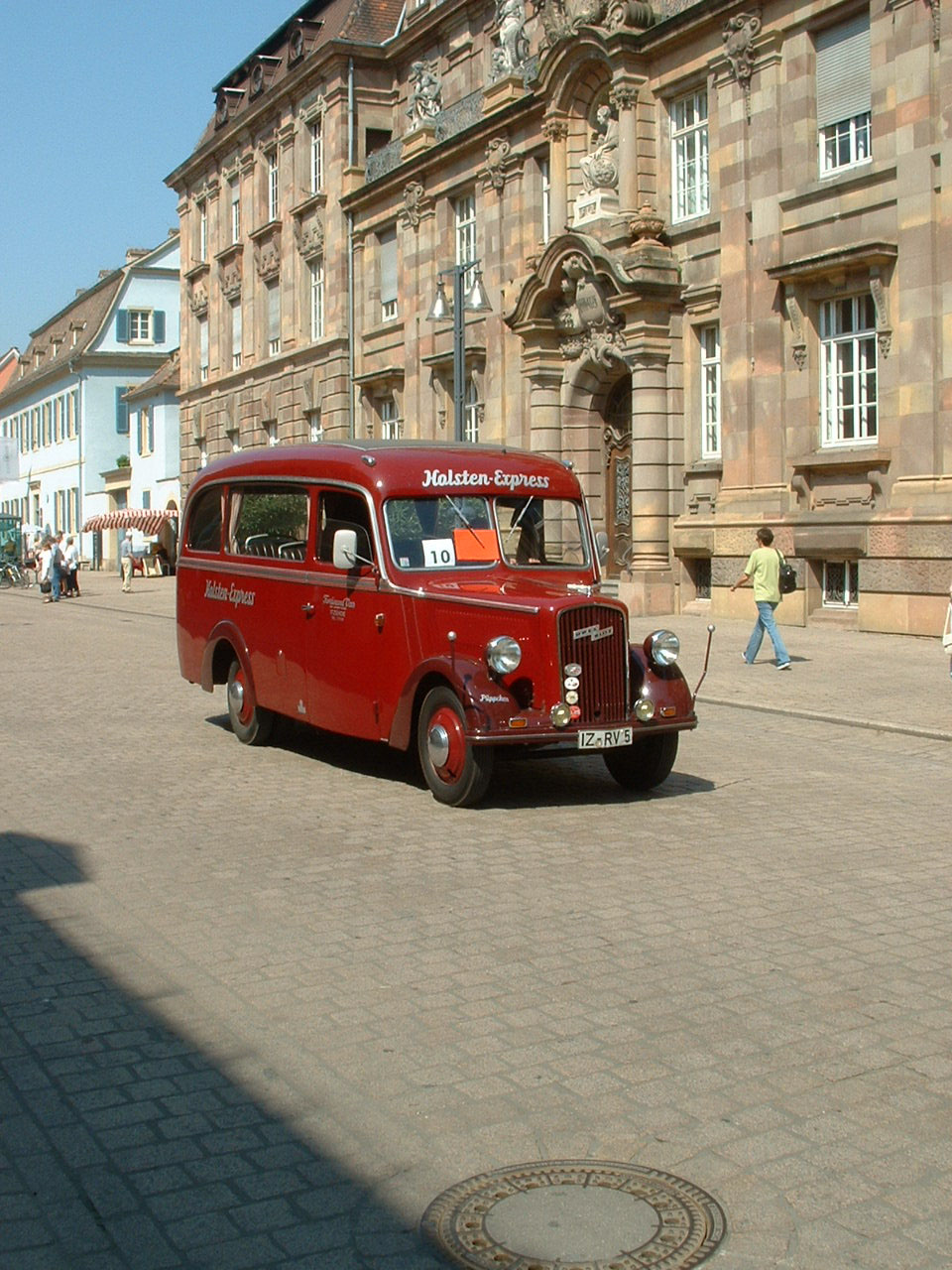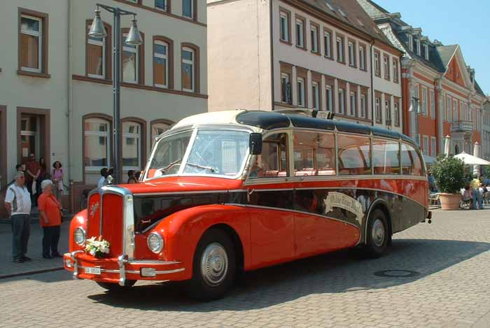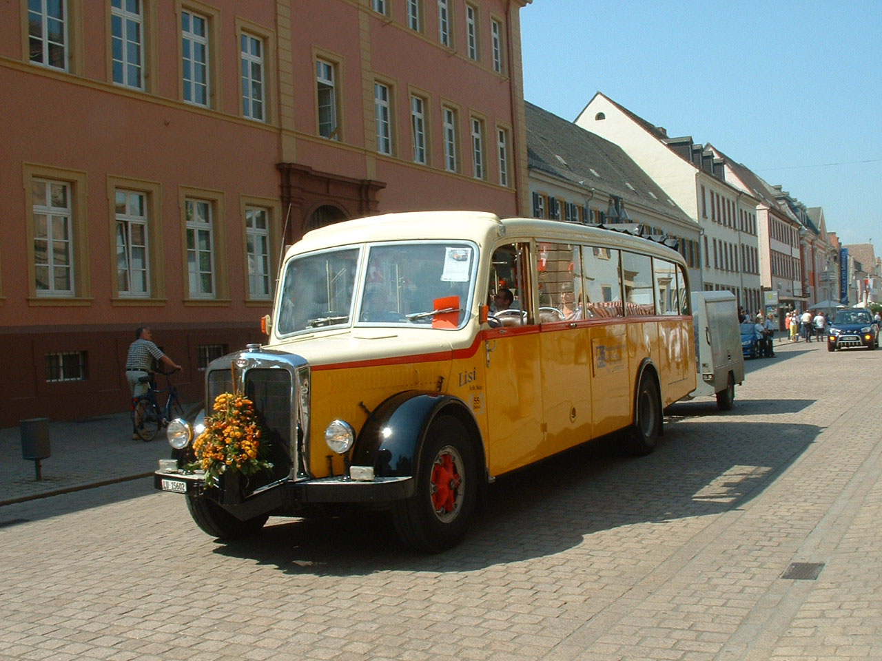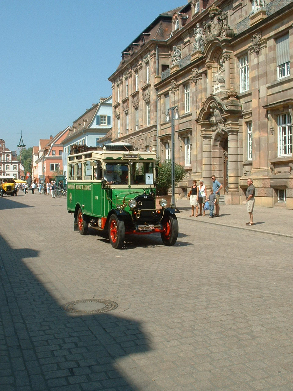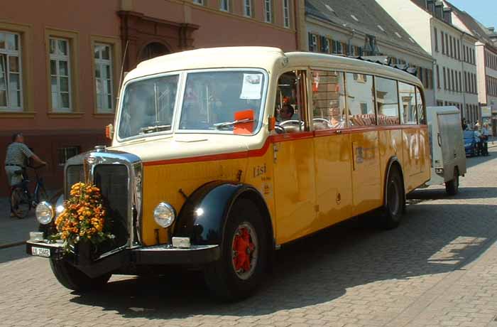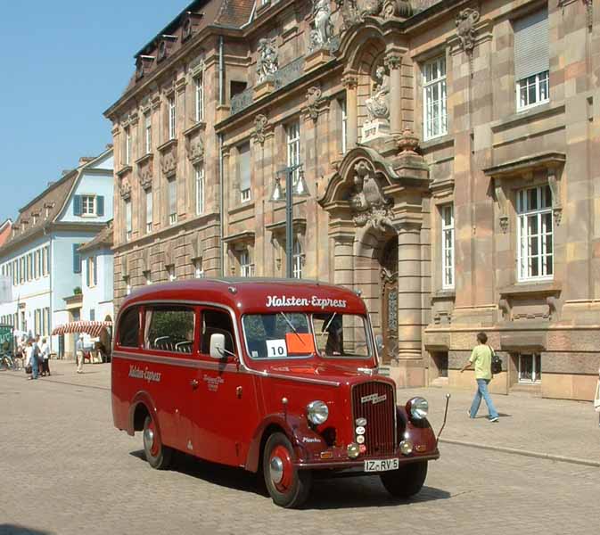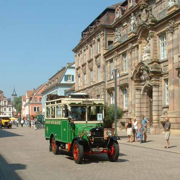 The oldest vehicle participating in the event was this 1923 International Harvester. The bus was originally in the United Kingdom and used by Johnston's Motor Transport on the London-Brighton service. The service has a first class option on the padded longitudinal bench. Second class passengers faced the first class passengers from their bare wooden bench. Before restoration by Roland Gross in southern Germany, the bus ended its days as a kebab van.