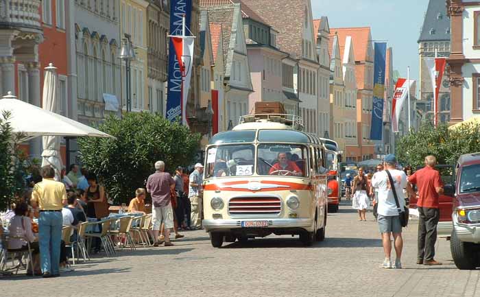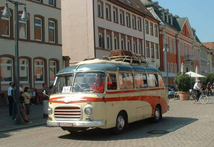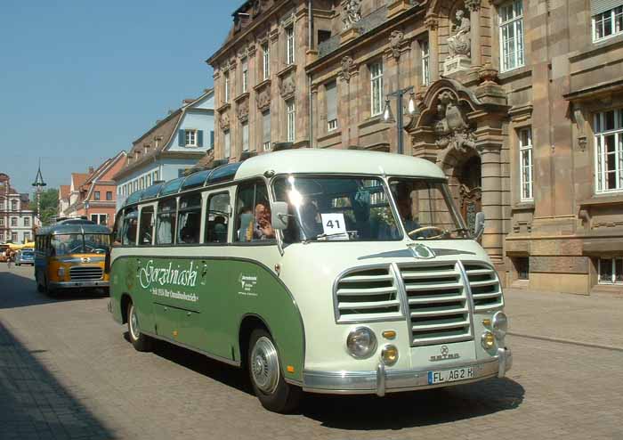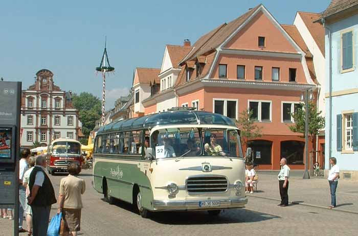 Both these coaches are Setra S6s, the model in front dates from 1953, whereas that behind, with more graceful lines, is of slightly more recent origin.