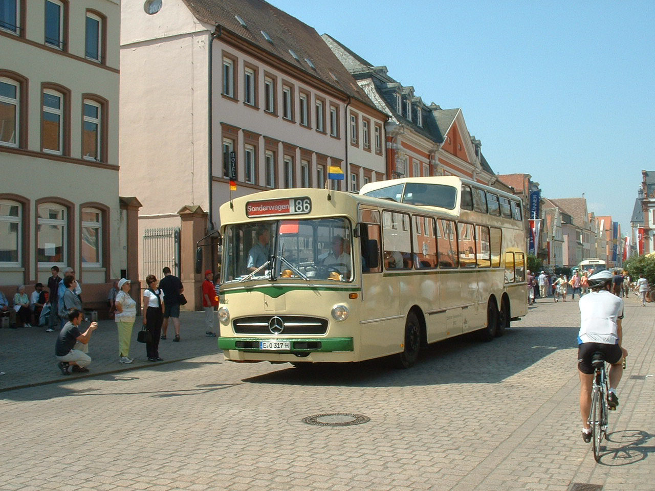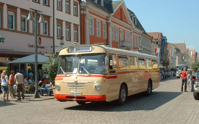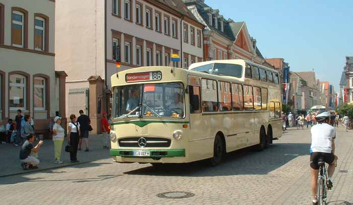 The Mercedes O317 had a rather unusual seating arrangement being neither doubledeck or single. Half way down the saloon one has the option of sitting in the raised section or the rear lower deck saloon, reminiscent of Plaxton's 4000RS design. Ludewig in Essen devloped this body style and the bus is preserved by employees of Essen Transport for whom the bus was originally built.