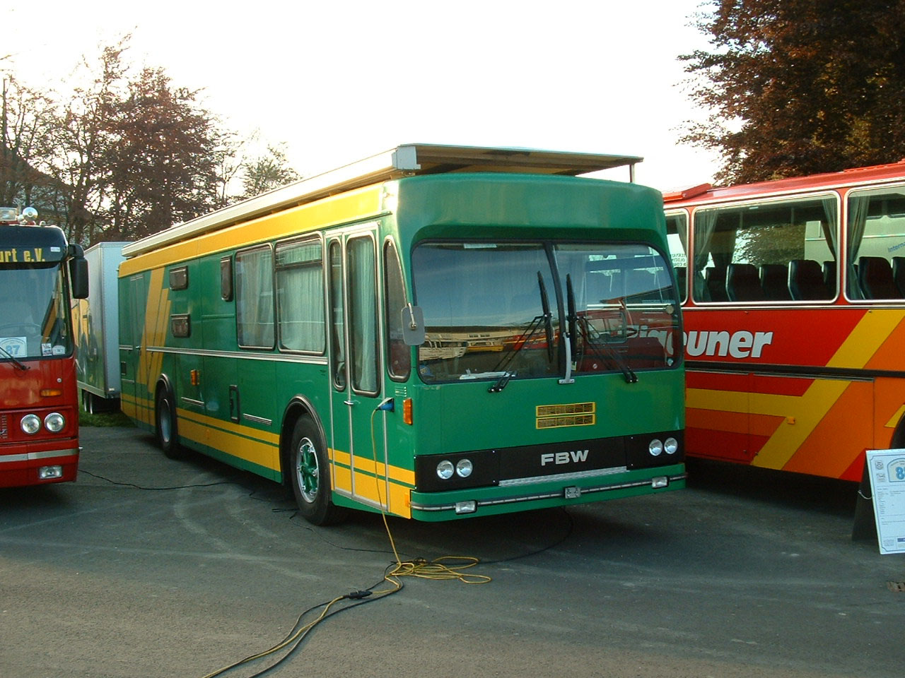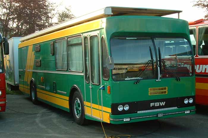 FBW was a Swiss truck and bus manufacturer, turning out about 200 hand built vehicles annually. This late entry was one of their more recent efforts. Quite what use the vehicle had in its current layout, or indeed if it was built as seen in unknown. Alongside is the Belgian Volvo B58/Haggland of de Zigeuner which visited SHOWBUS in 1999. |