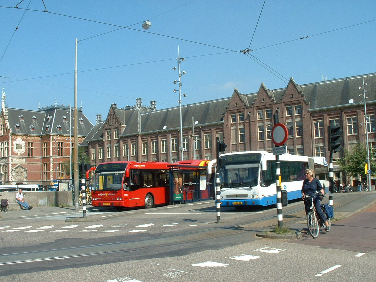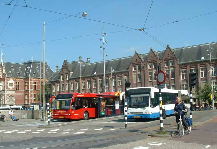 The elegant facade of Amsterdam Central Station forms the background to this selection of city buses - and a tram.