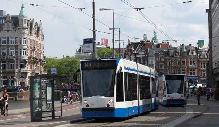 Two Combinos pass in the city with 2081 heading for Slotermeer.