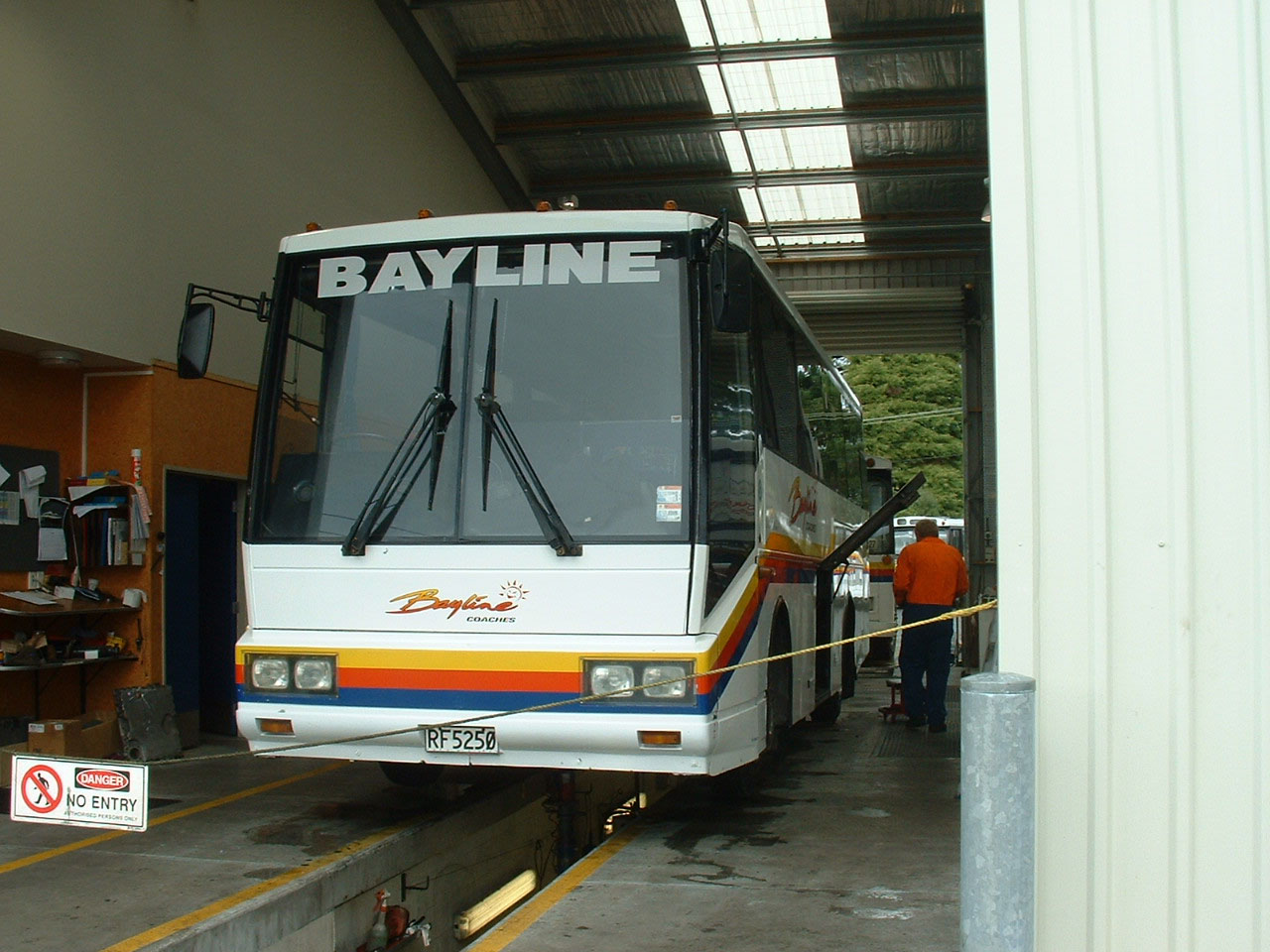 The Bayline RE arrived with former Northern General AEC-Park Royal RMF Routemaster 2101 (RCN701) disguised as RMF2771 (EYY766B). The group owning the bus were attempting to raise funds to travel across Europe and Asia to Japan.