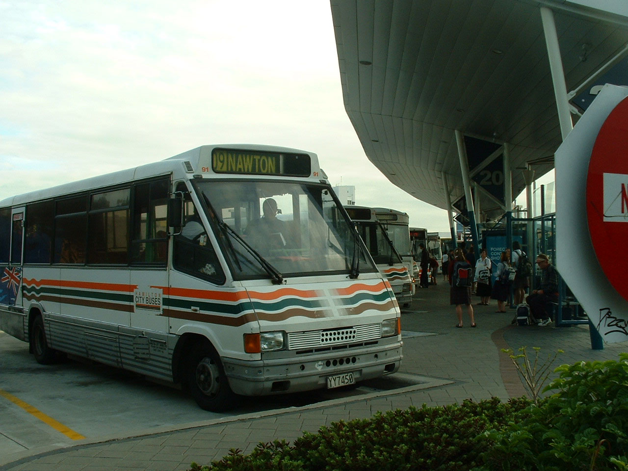 Mercedes/Designline 85 again, followed out of the Bus Station by one of several acquired ex Bayline buses. |