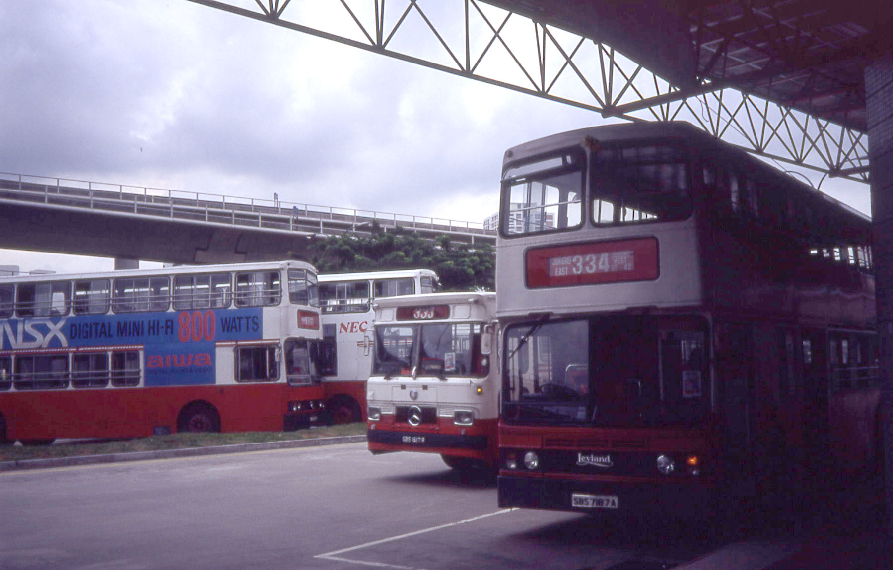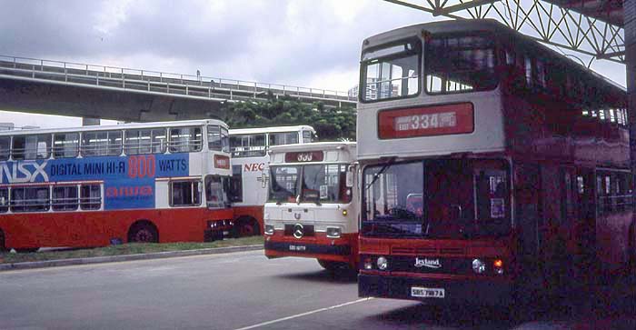 At a suburban bus station is this AN68 Atlantean with Alexander bodywork, it may well have been one of the vehicles subsequently sold to Hong Kong Citybus. |