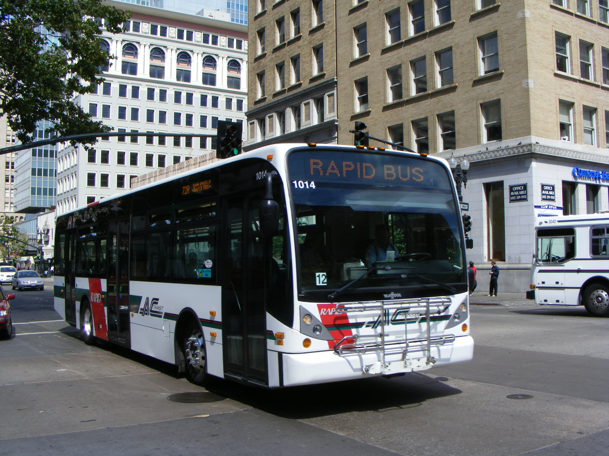 A nearside view of A330 1014. Note the Rapid branding for the express routes introduced across Oakland.