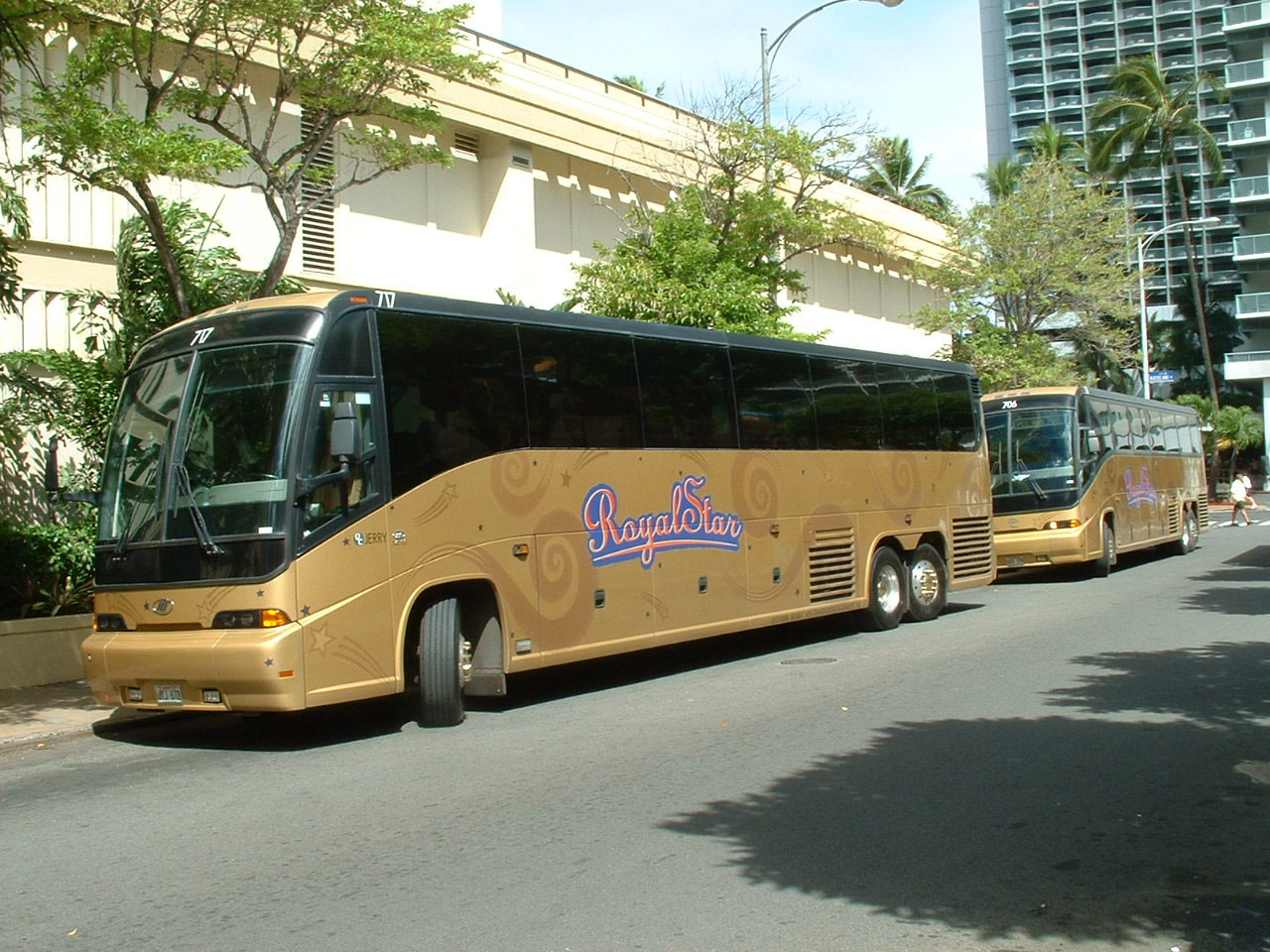This Royal Star MCI, 717, seen in August 2004 is named Jerry. It is not known if 706 behind is called Tom!