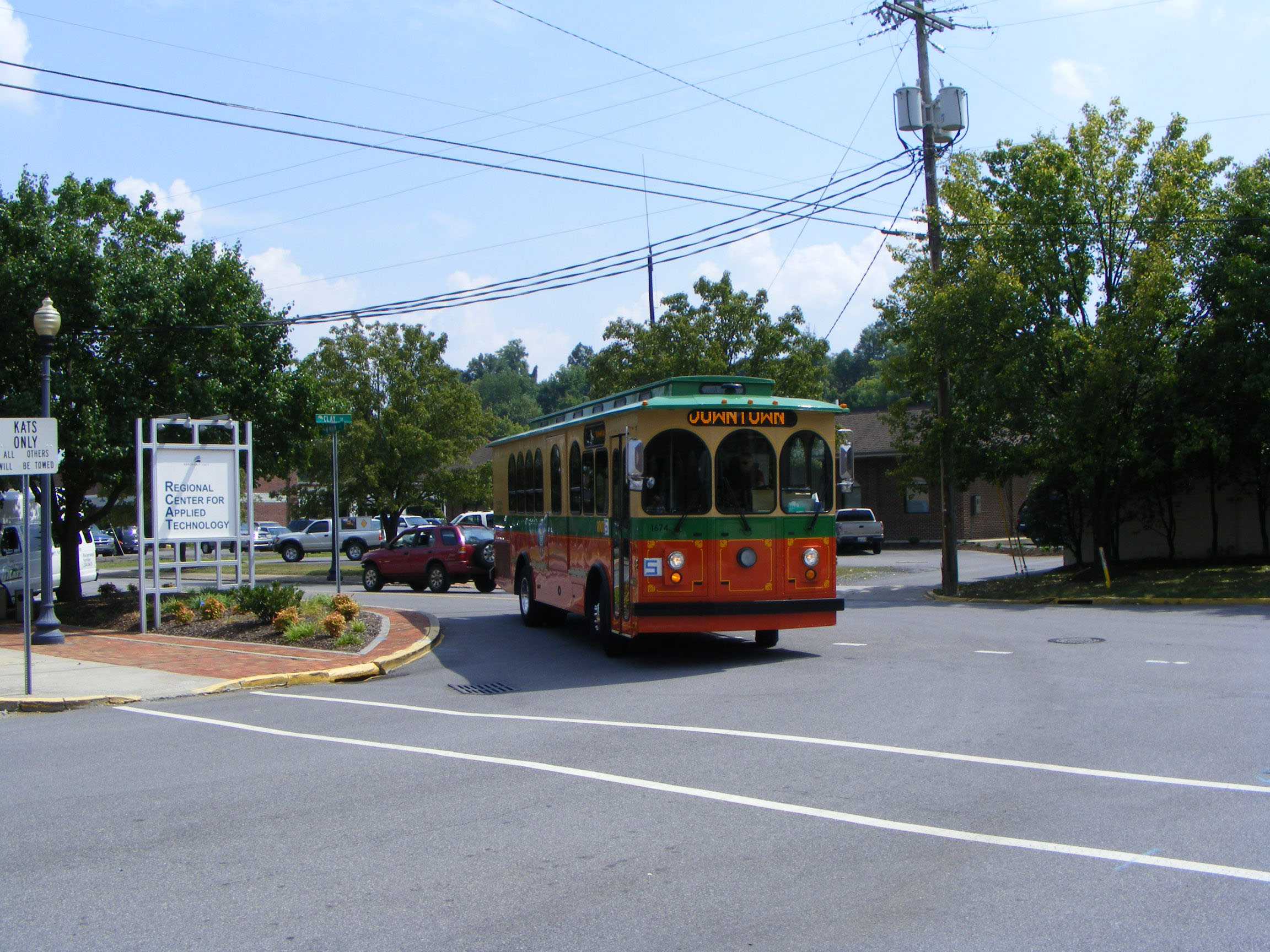 Like most small city transit systems in the States, operations operate on a pulse basis with vehicles on all routes meeting at a hub with the opportunity for passengers to transfer between routes and the vehicles then all depart simultaneously. Kingsport Area Transit Center is the local hub, so at a particular time on the clock face buses are departing on all five routes, with paratransit available for good measure. In addition to the Fords minibuses, the fleet uses two "vintage" trolleys on route 5.