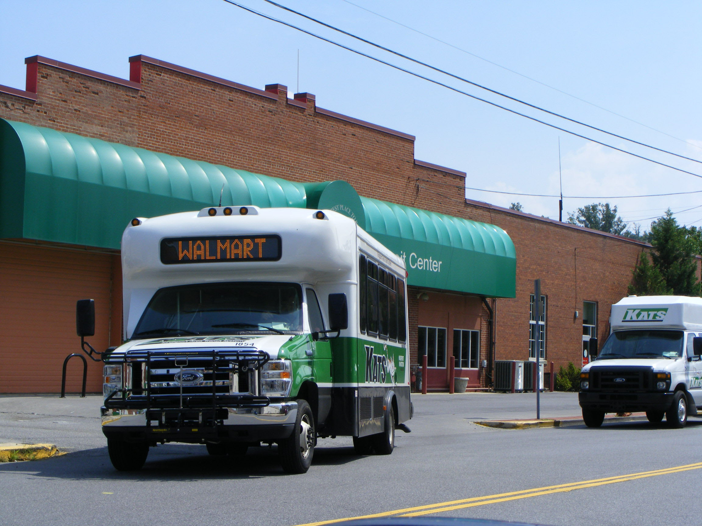 At the Transit Center and heading for Walmart is E450 1854 in a different, newer and more striking livery.