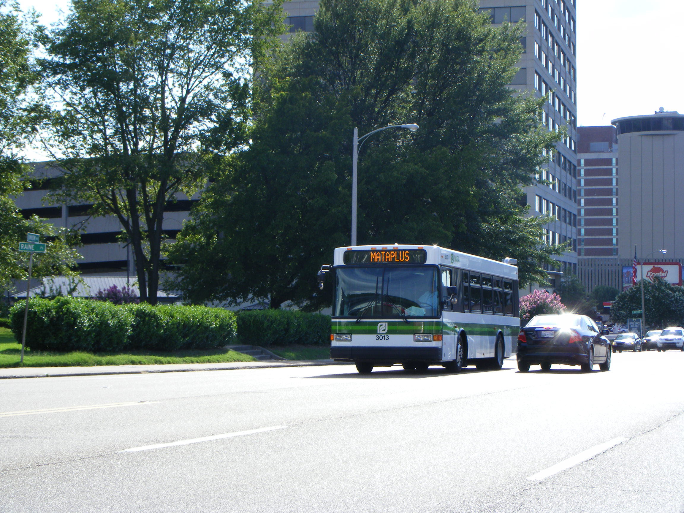 Also purchased in 2010 with the hybrids were 22 standard 29ft standard Advantage buses. Here 3013 is returning to the depot after use on MATAplus work.
