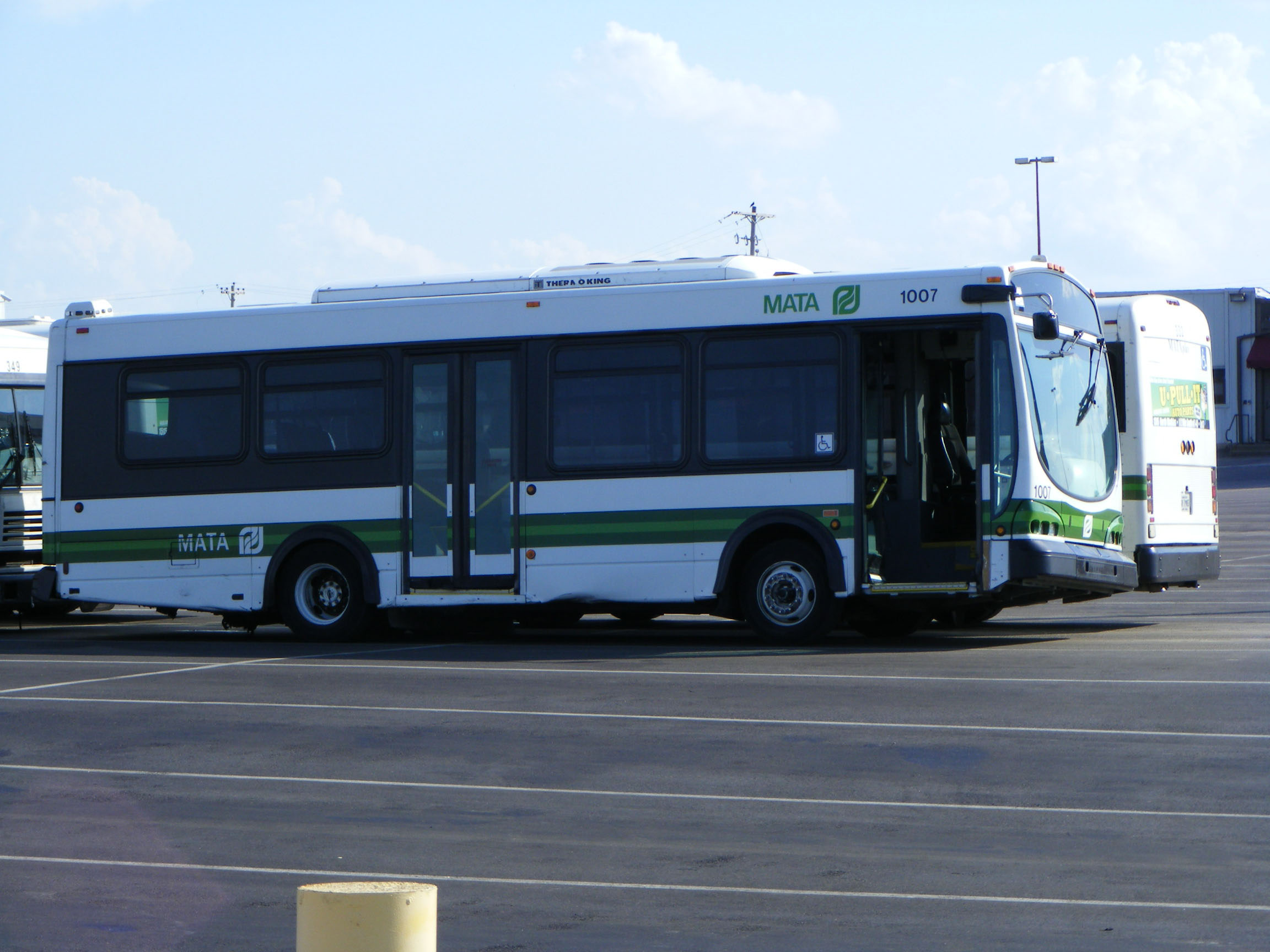 In 2005 MATA bought a batch of fifteen Chance Opus LFB buses (1001-1015). The Chance buses have body components supplied by Wrights of Northern Ireland. This is 1007, parked in the depot next to one of the Bluebirds.