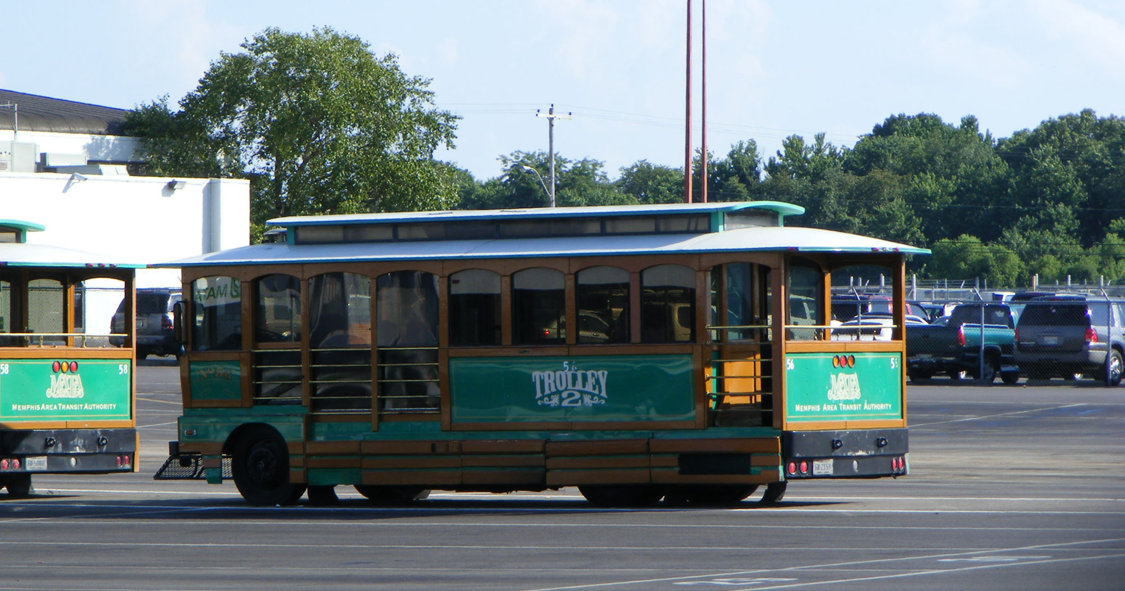 No longer operated was a small fleet of mock diesel trolleys, which was also built by Chance. Here 56 is seen in the depot parked behind 58.