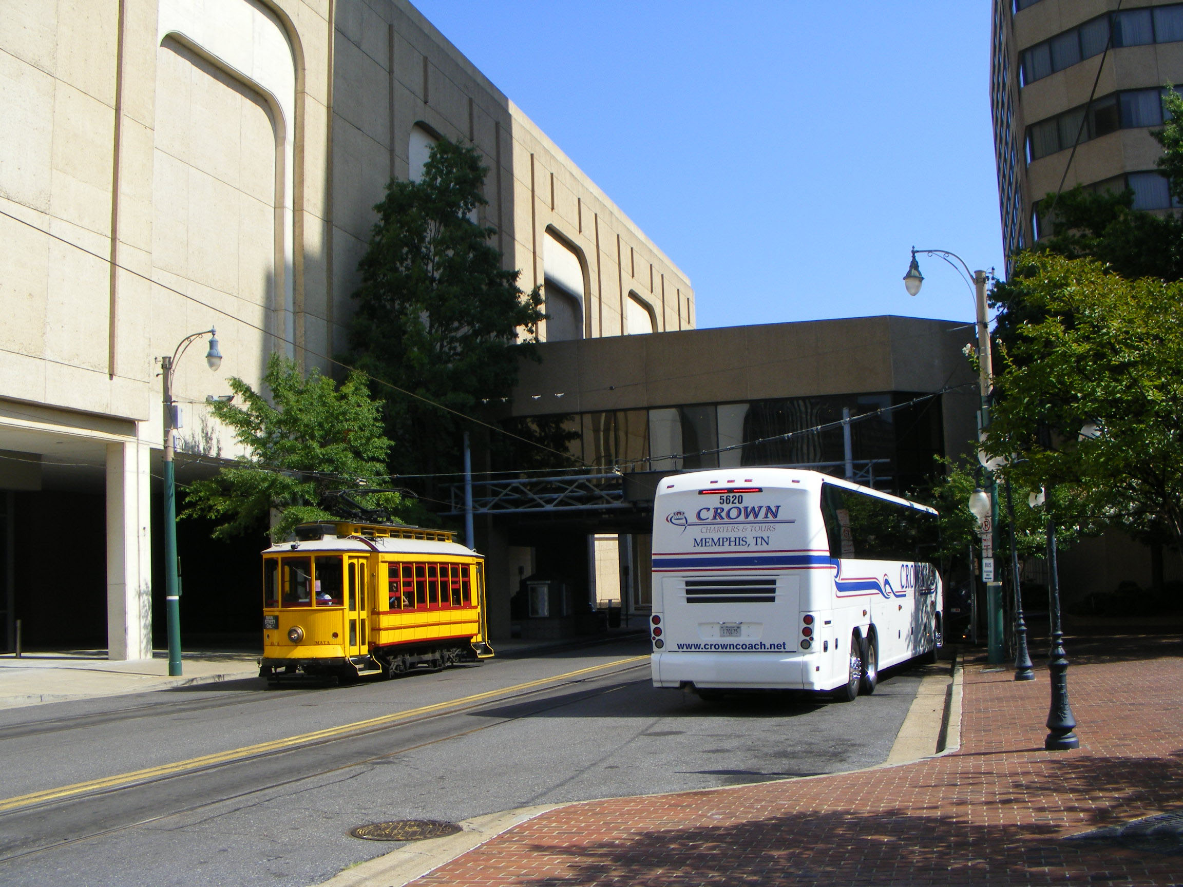 Coaches belonging to local operator Crown are seen around and about Memphis. Crown MCI 5620 is seen with tram 204.