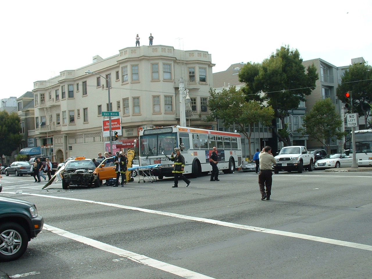 The fleet of 45 NABI 416s which were part of a diverted order for AC Transit delivered in 1999 to alleviate a MUNI vehicle shortage. NABI 8003 is seen in the Fishermans Wharf area in August 2002. |