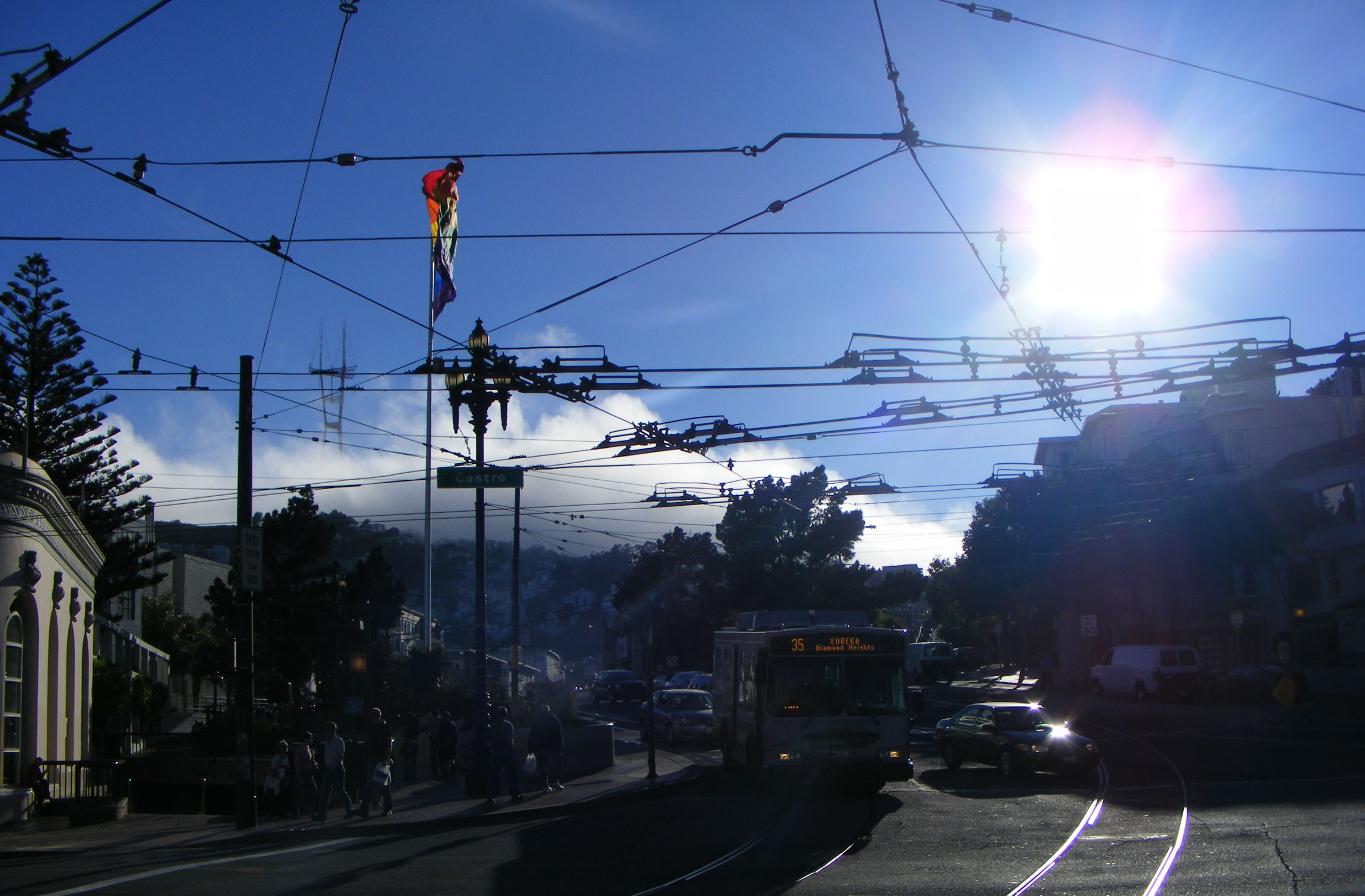 Caught out in the Castro district in August 2008 is 8519, one of the thirty 30 foot long Orion VII hybrids that ousted the Orion I Citycruisers from the MUNI fleet. |