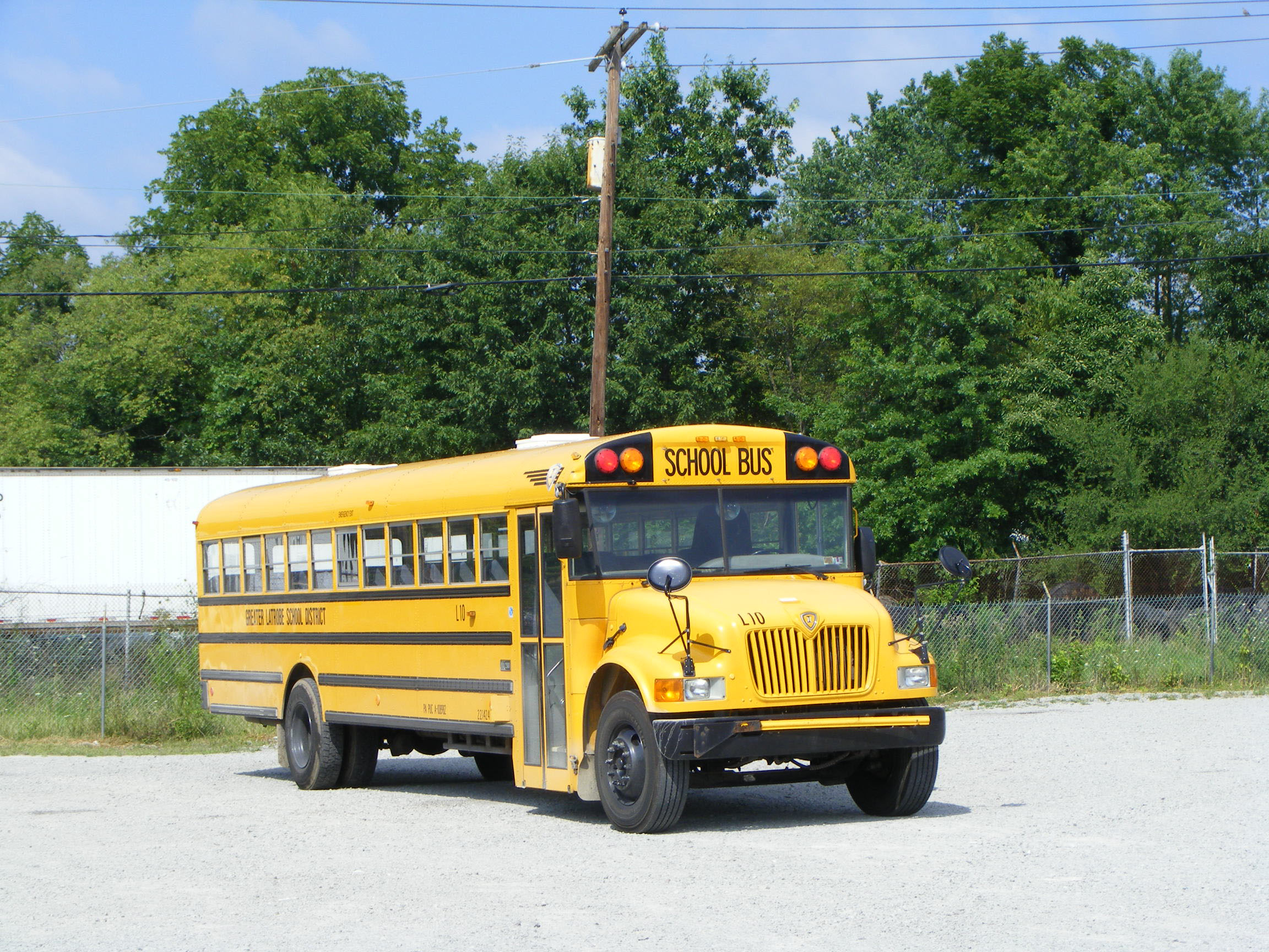 Another school bus provider was sharing the Greensburg yard back in July 2010. This pair of buses, Bluebird A91 and International C73, belongs to A J Myers & Sons. |