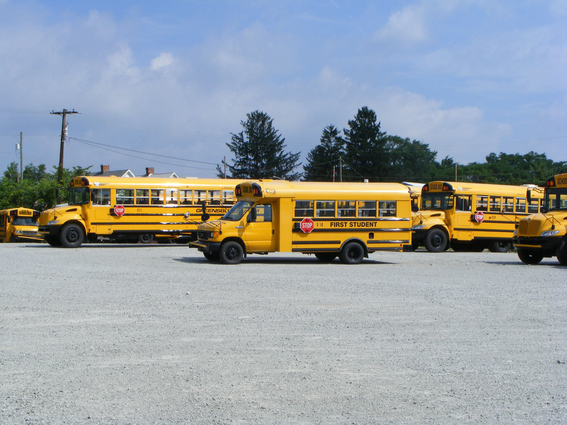 Another school bus to bear the First Student brand in the Greensburg yard was this small Ford, lettered V14. For some reason the Greensburg fleet is not numbered into the national scheme. |