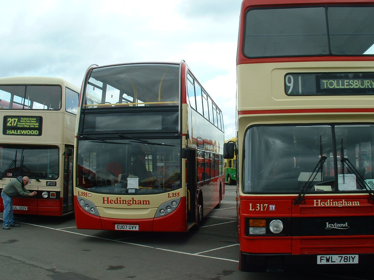 Another ECW bodied Olympian, ex AERE and Oxford, L317 (FWL781Y) is seen at North Weald in 2007 alongside newly acquired Alexander Dennis Enviro400 L355 (EU07GVY). |