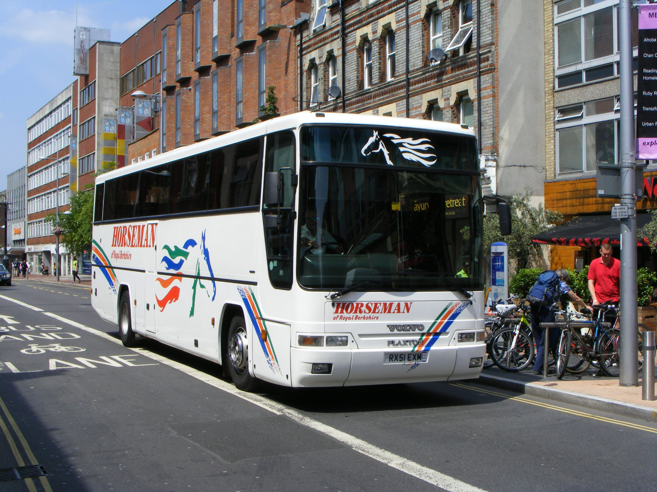 At work in Reading in July 2013 was this smart 12 year old Plaxton 53 seat bodied Volvo B10M, RX51EXM.