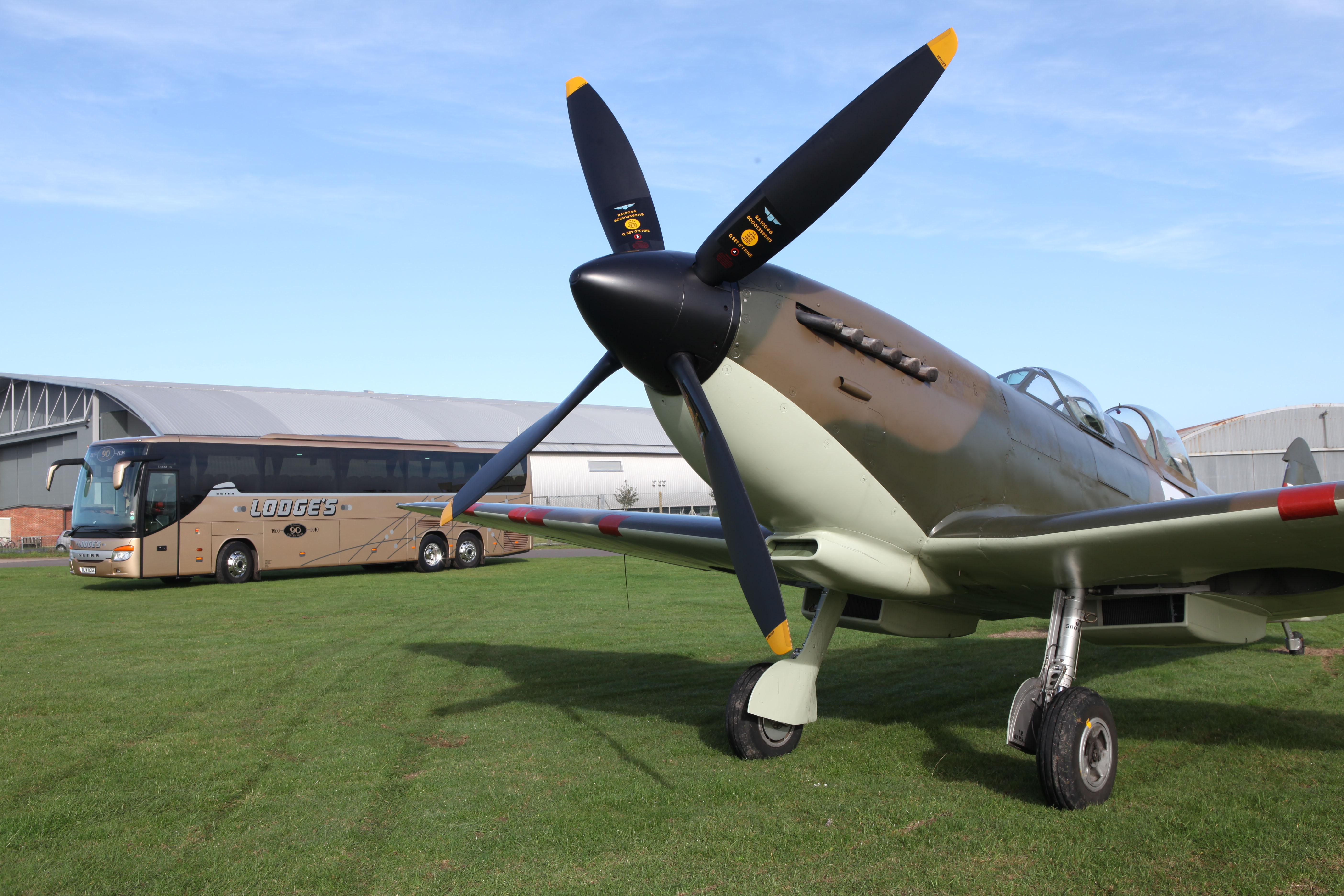 A few days after SHOWBUS in 2010, Lodge's arranged to take their new gold Setra and pose it at the Imperial War Museum with a Spitfire.
