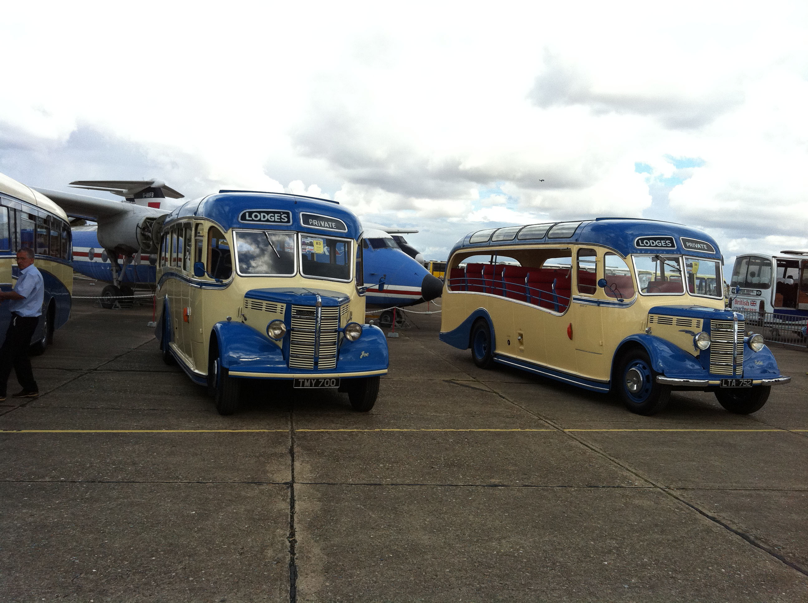 Feature of Lodge's 2011 display was the appearance of a second Bedford OB. As can be seen the new addition to the fleet is minus most of its size. New to Western National as 1413 (LTA752) the coach passed to Lincolnshire Road Car where it became open sided for use on Skegness seafront as their 2094. It spents some years preserved in Lincolnshire colours until acquired by Lodge's. |