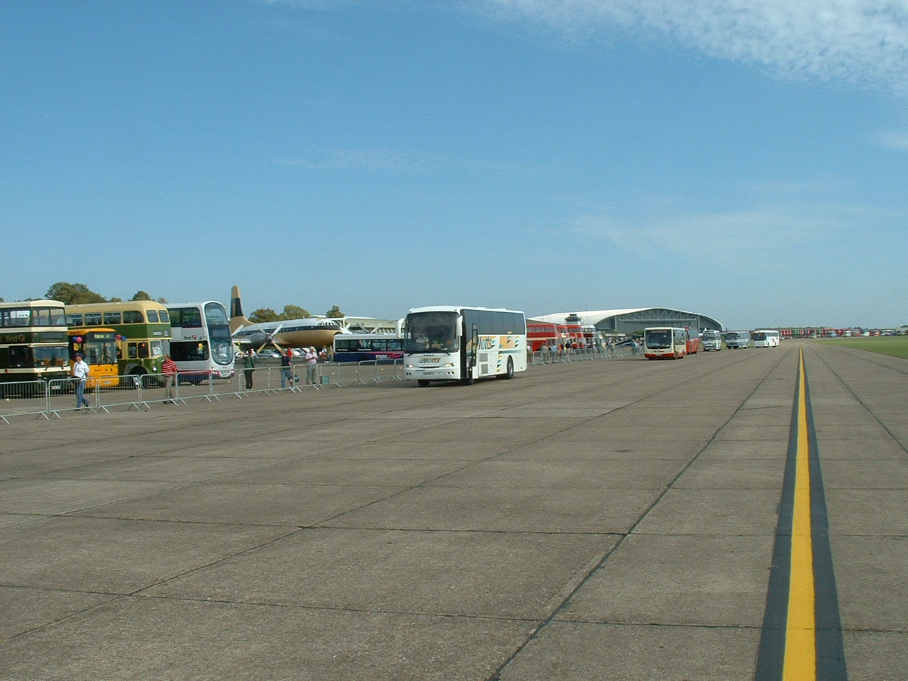Parking Reception at SHOWBUS 2007, the former Cedric Mistral, R50MTT. Whenever there was a Duxford Road Run the entrants paraded across the site and it falls to the Parking Reception vehicle to set the pace. So, somewhat ironically, this Jonckheere bodied coach led the Plaxton Gold Run parade.