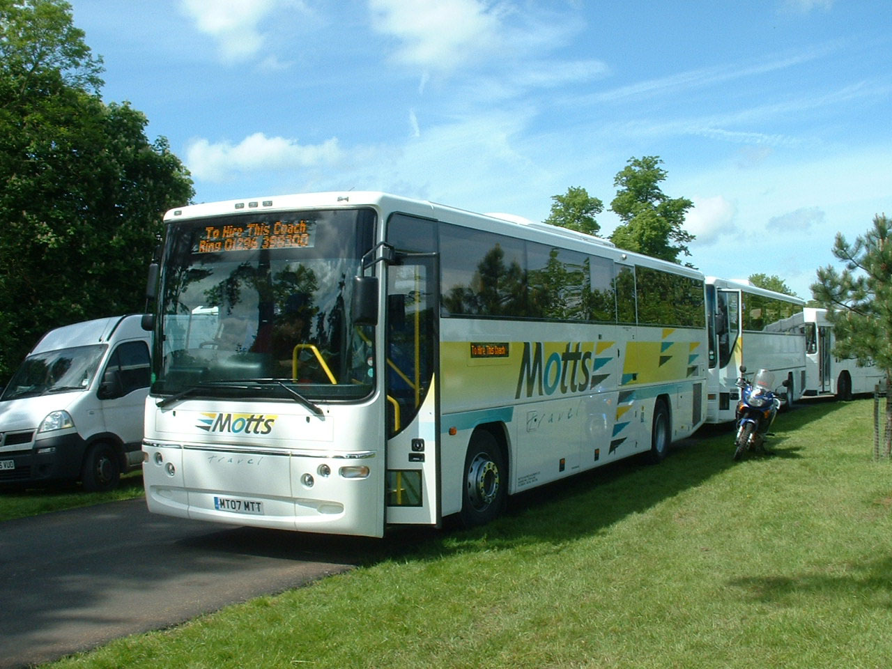 Having bought a 70 seat Scania/Irizar Century earlier, Motts reverted to the Plaxton/Volvo combination in 2007. Volvo B7R MT07MTT is seen when only a few months old at Waddesdon Manor where its capacity is being put to good use on the annual Park & Ride service for the Race for Life around the Manor grounds.