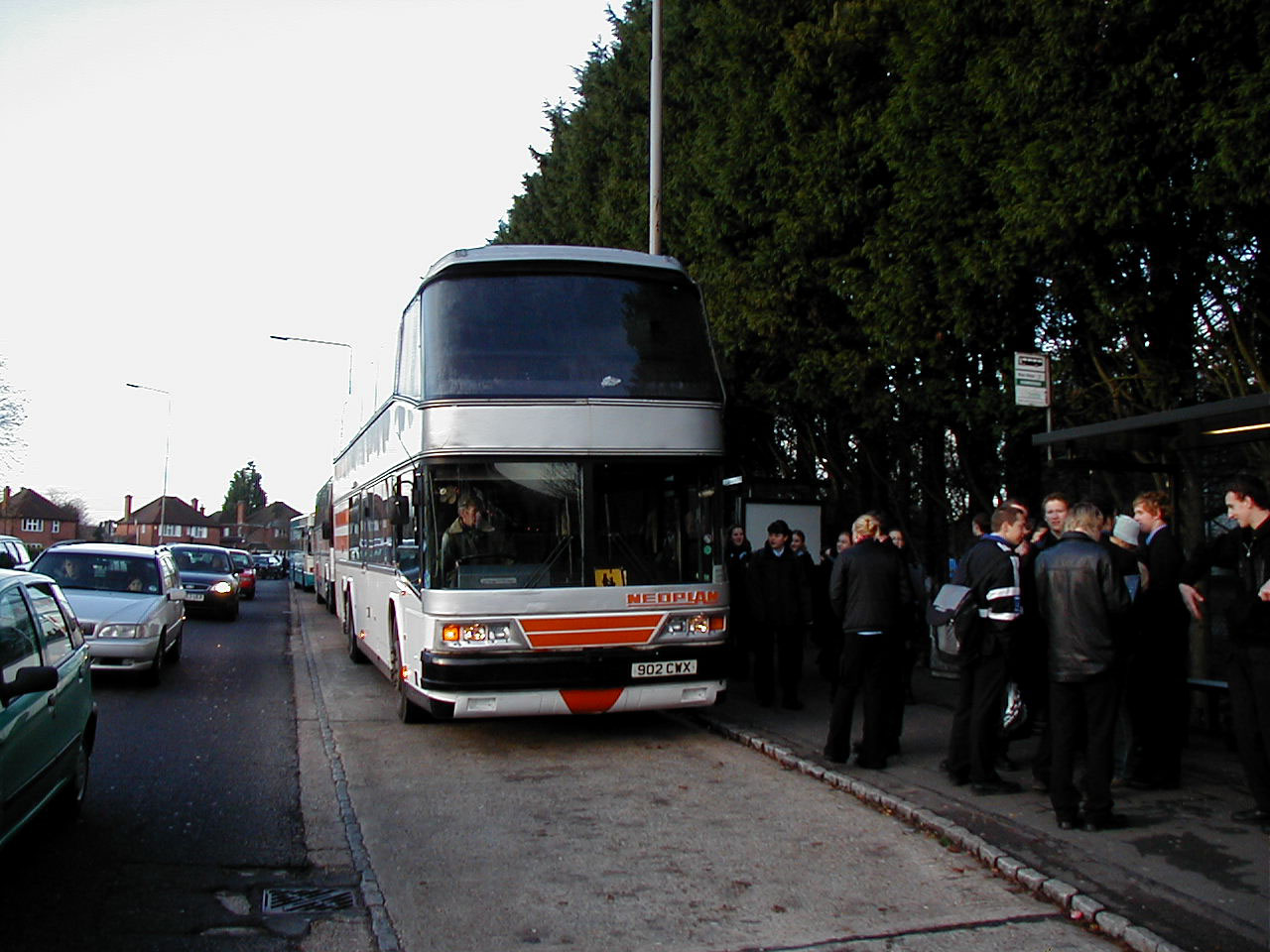 Prestwood's Neoplan Skyliner, 902CWX, is long retired, but it is seen here on Wycombe school services.