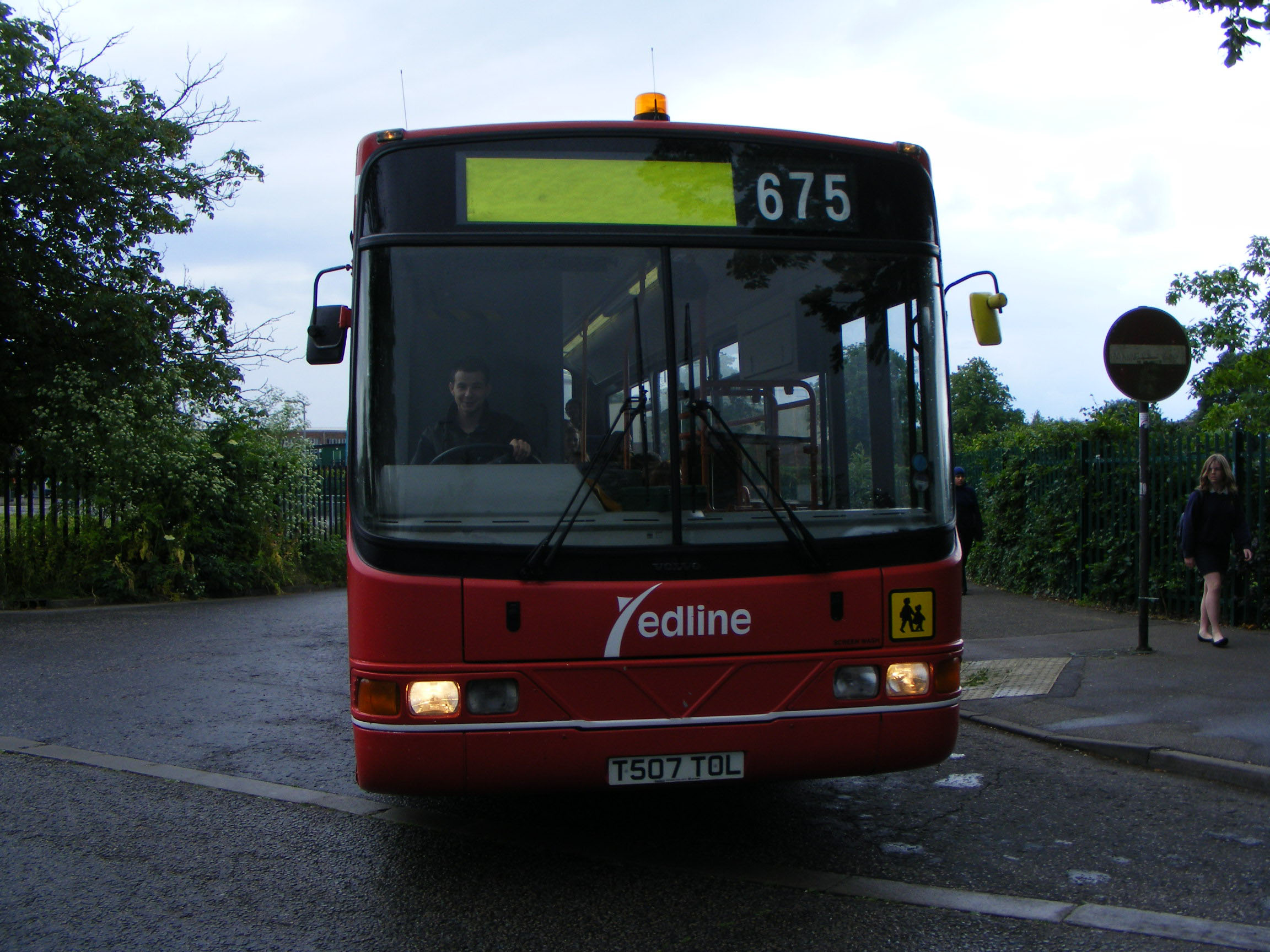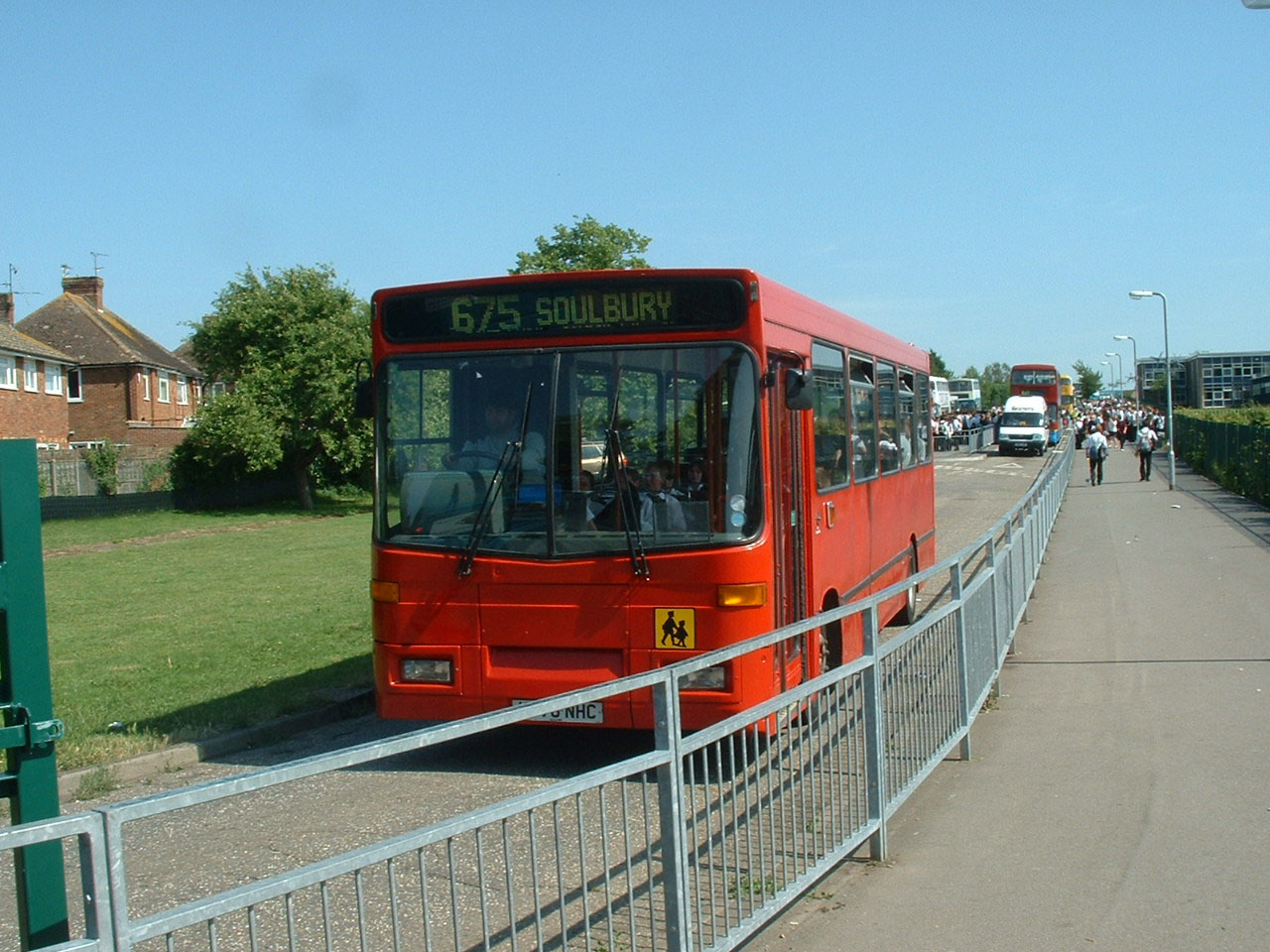 Redline's former Stagecoach Southcoast Alexadner Dash bodied Dennis Dart 576 (K576NHC) is seen in summer 2007 entering the Grange School coach park in Aylesbury.