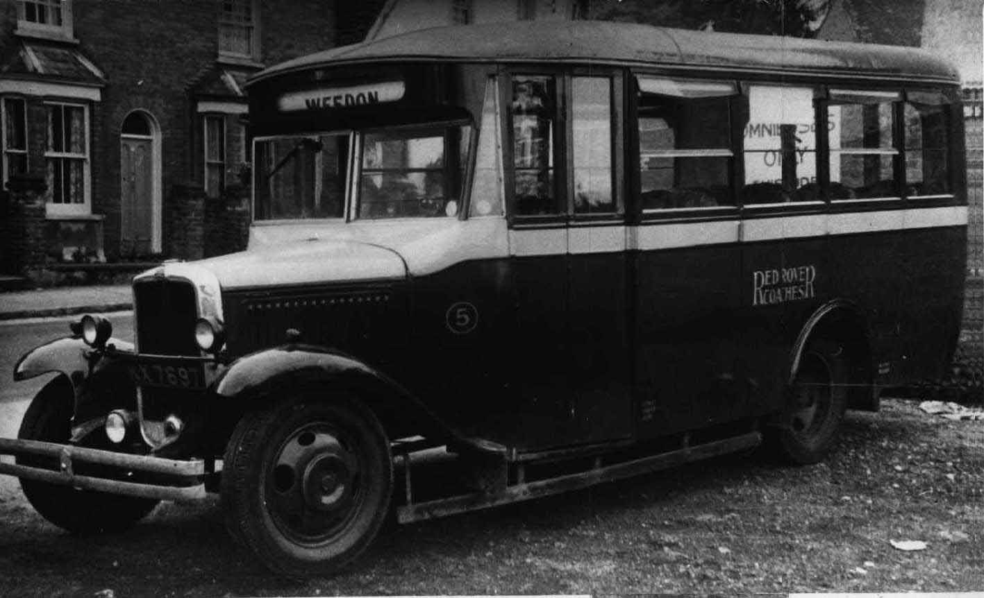 This unidentified bus was 5 (KX769) with destination set for the village of Weeden. Behind can be seen an "Omnibuses Only" sign for the parking area.