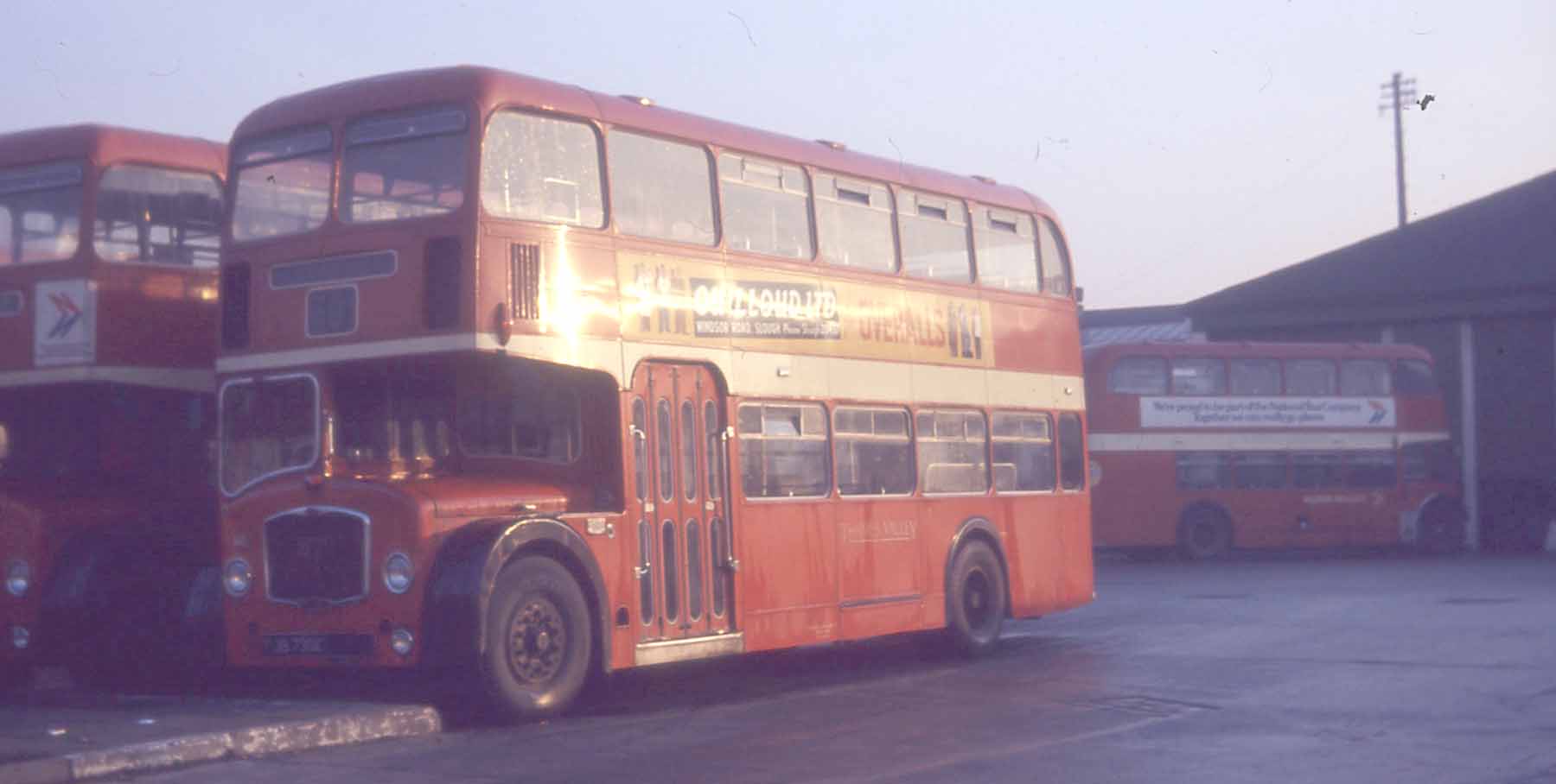 Early in 1972, 655 (FJB739C) is seen on the forecourt of Maidenhead depot in late afternoon weak sunshine. Whereas the Bristol LD behind had gained its new Alder Valley NBC style fleetname, former D23 has retained its Thames Valley fleetname. It must be remembered that there was a year or so between the formation of Alder Valley from Thames Valley and Aldershot & District and the advent of the NBC corporate identity. Many Thames Valley and Aldershot & District buses received the Ribble dark red livery and small gold Alder Valley fleetnames during that time. |