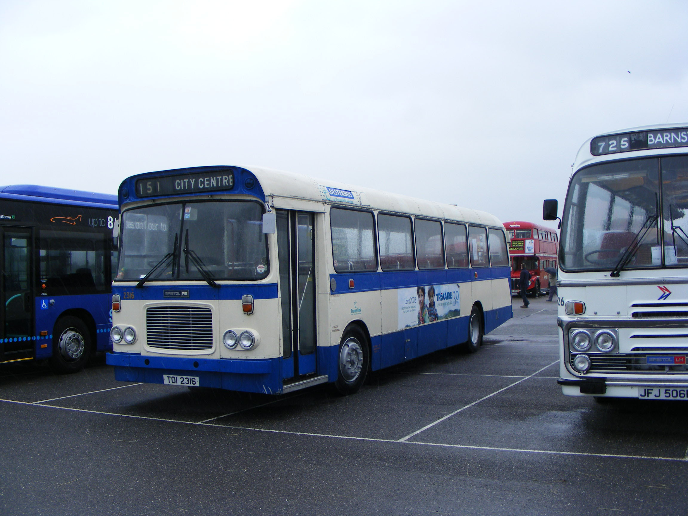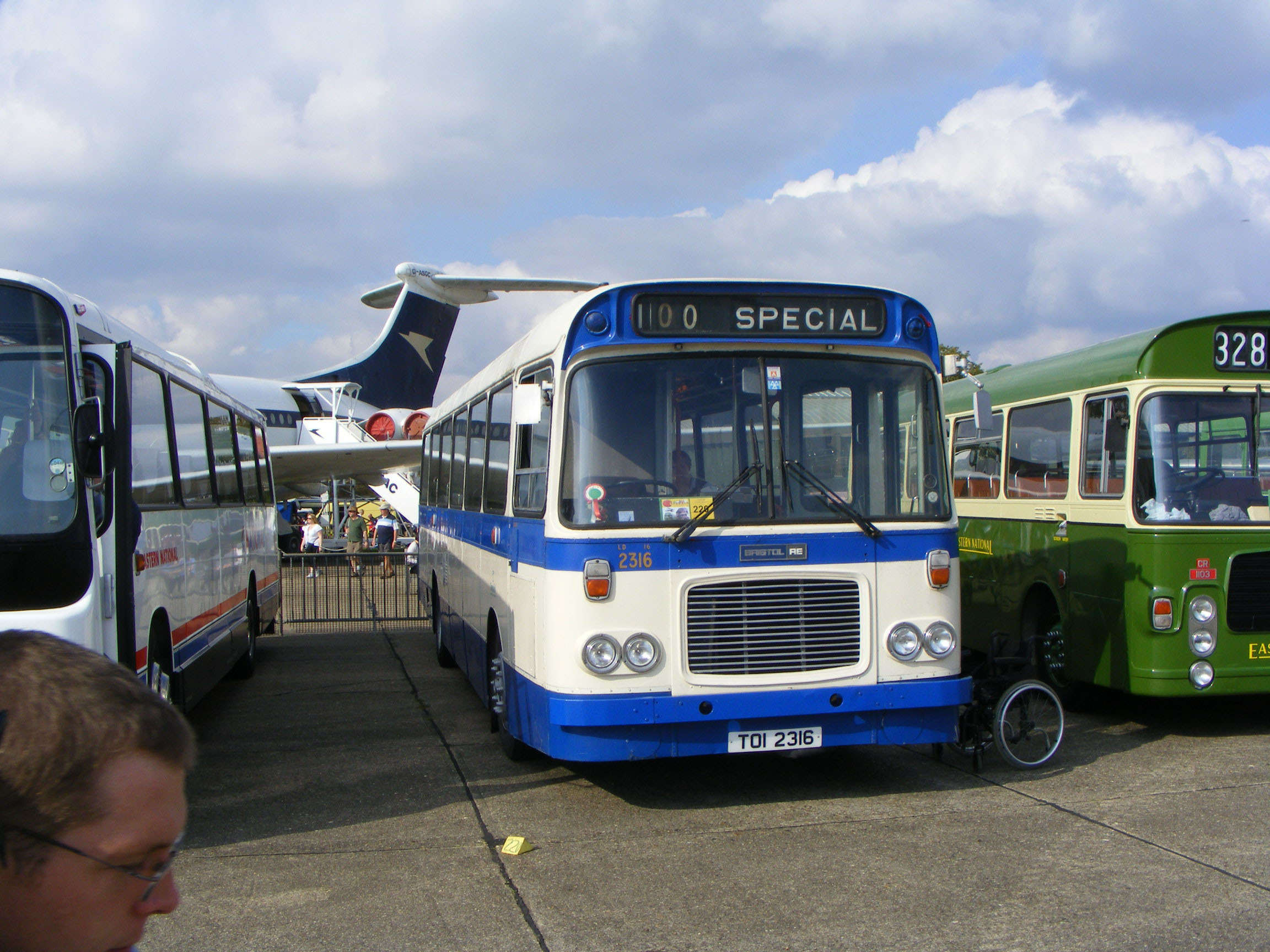 A BOAC VC10 forms the back drop to 2316 in sunshine at the 2008 SHOWBUS Bristol line up. |