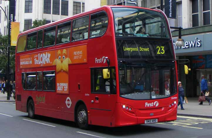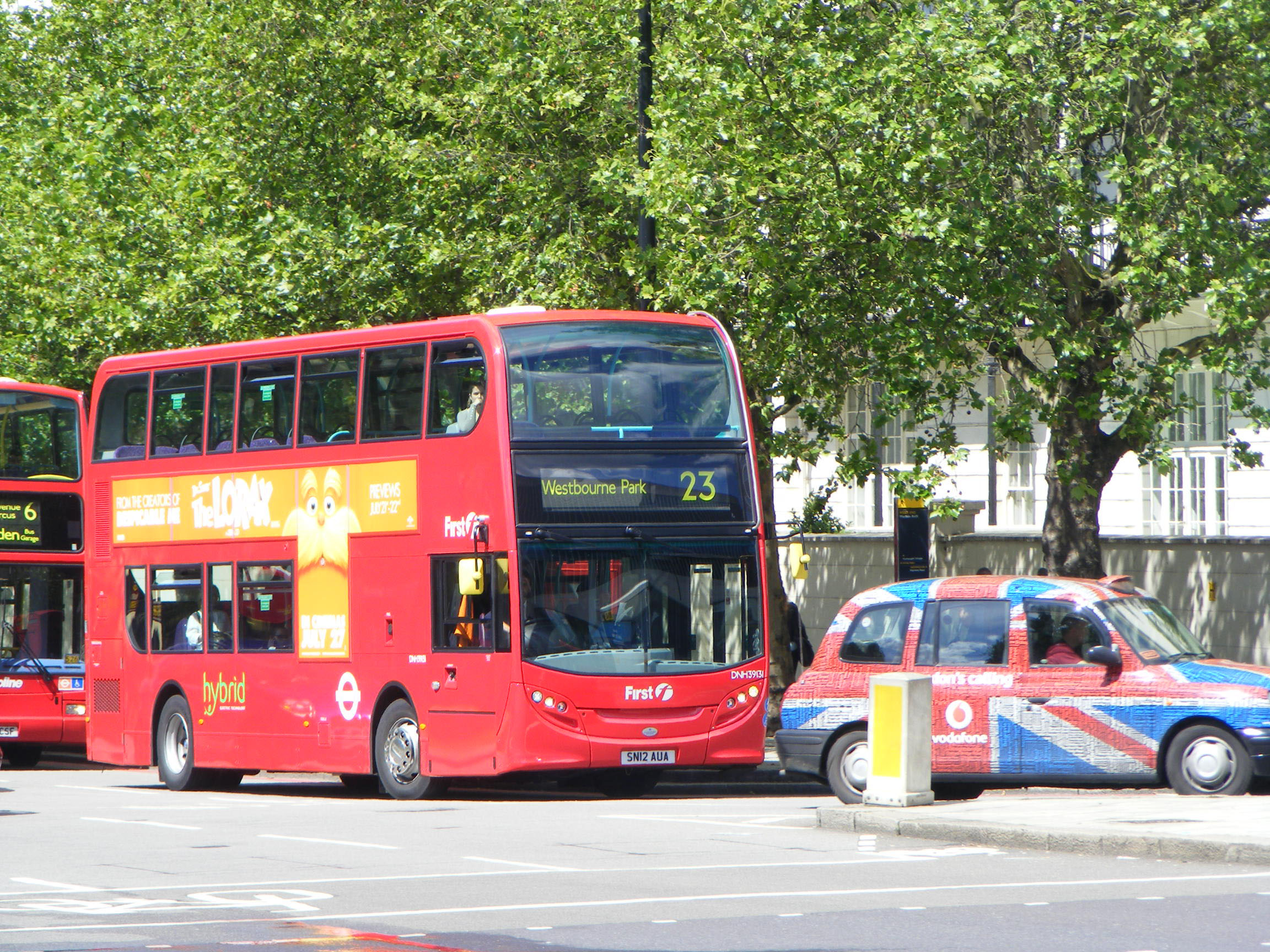 Hybrid Enviro400H DNH39131 (SN12AUA) works along the Edgware Road in July 2012.