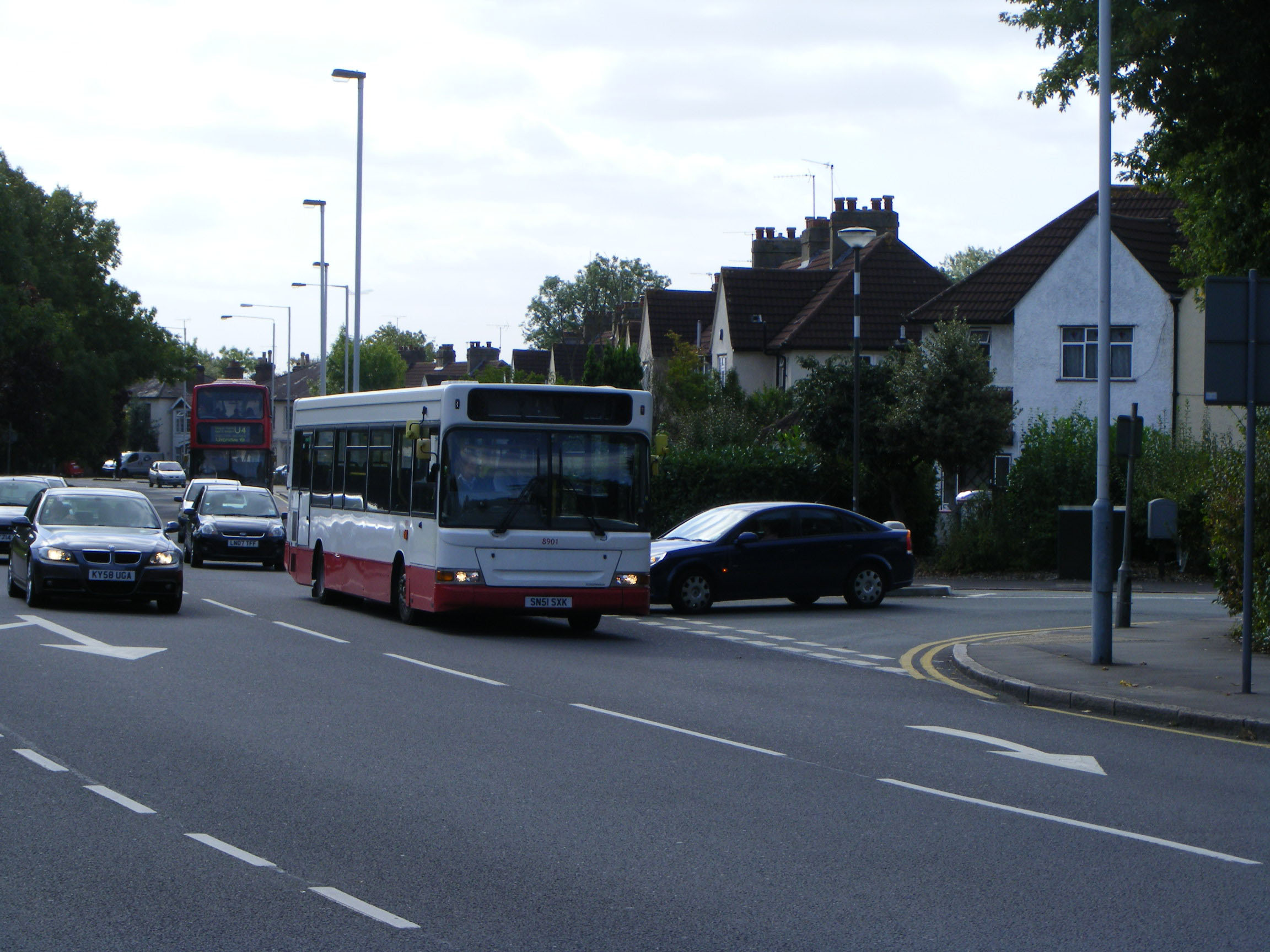 Seen on Hillingdon Road near Brunel University in Uxbridge in September 2011 is Abellio Dart 8901 (SN51SXK). The bus may appear to be in Abellio Surrey colours, but is actually in Abellio London training livery. The Dart was acquired for its role from London United where it was DPS566.