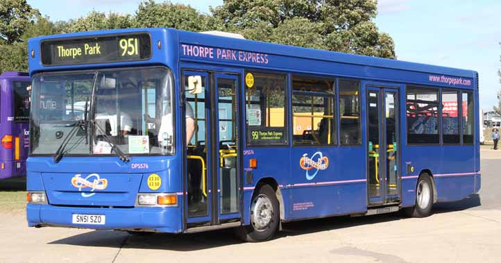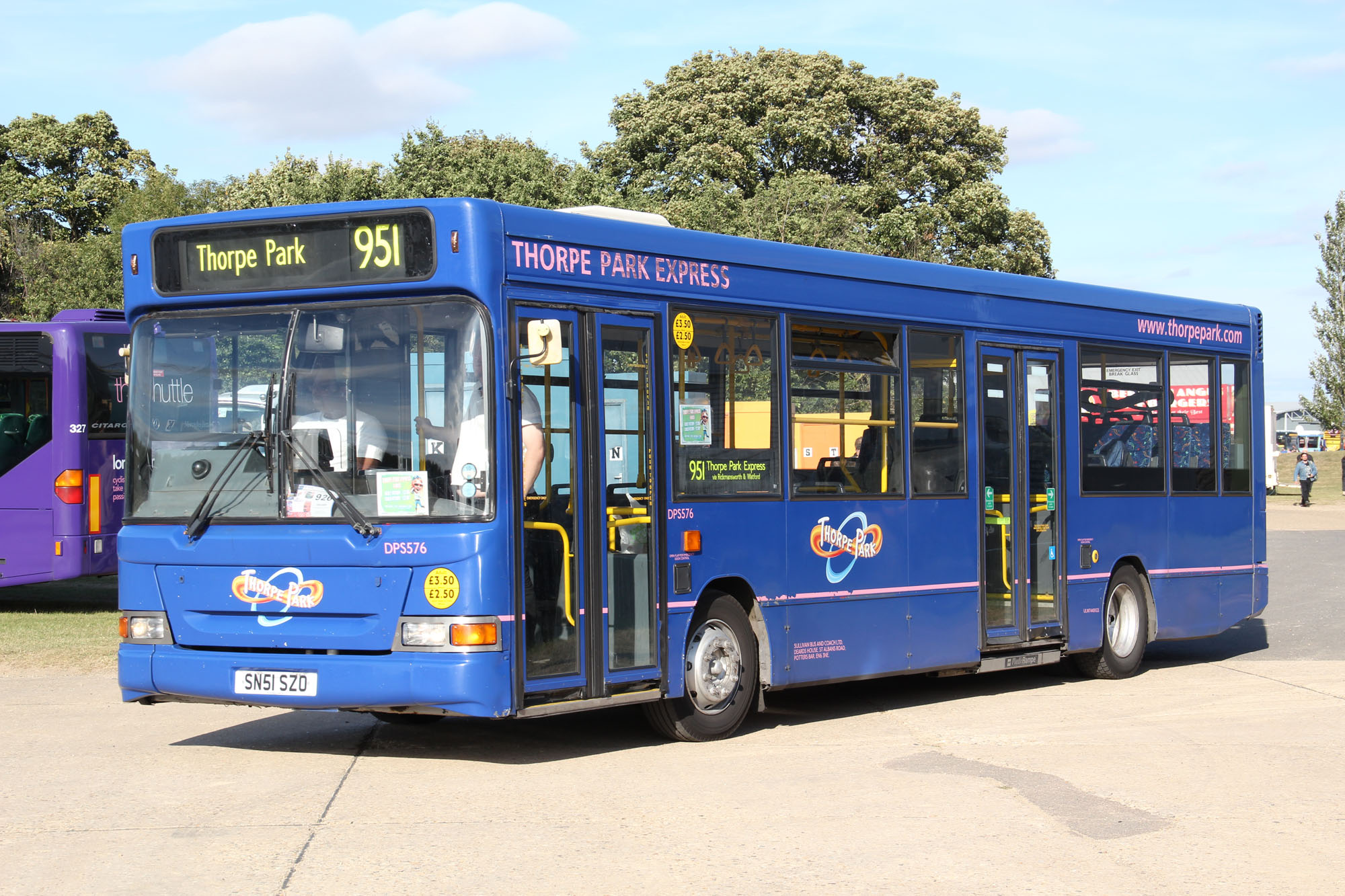 Former London United Dennis Dart Plaxton Pointer DPS576 (SN51SZO) joined Sullivans Buses for use on their special Thorpe Park Express service. The bus is seen at SHOWBUS 2012.