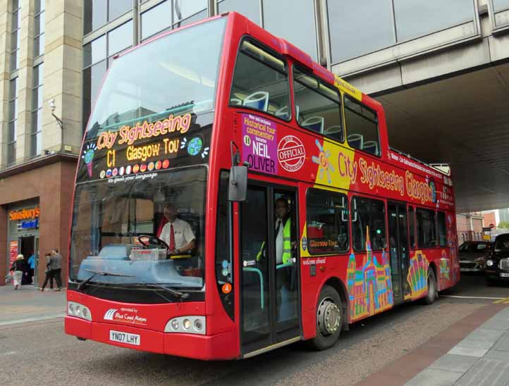 Another recipient of the same chassis/body combination was West Coast Motors who converted former SO8 (YN07LHY) to semi open top for City Sightseeing tours of Glasgow, where the bus is seen in August 2014. Picture ref A4446 |