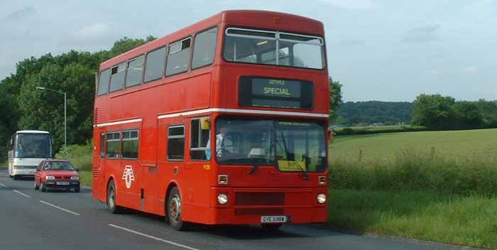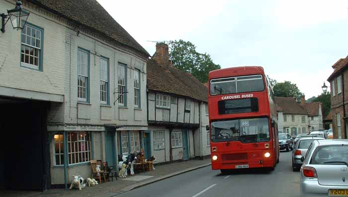 In 2009 Carousel treated M336 (EYE336V) to a repaint in LT red with gold leaf decals - including the Carousel fleetname. It is seen in Marlow in July in rare glorious summer weather that year.