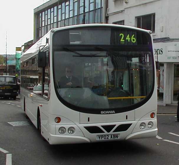 This Wright Solar bodied Scania L94UB demonstrator was at work on Metrobus' 246 route in Bromley in 2003.