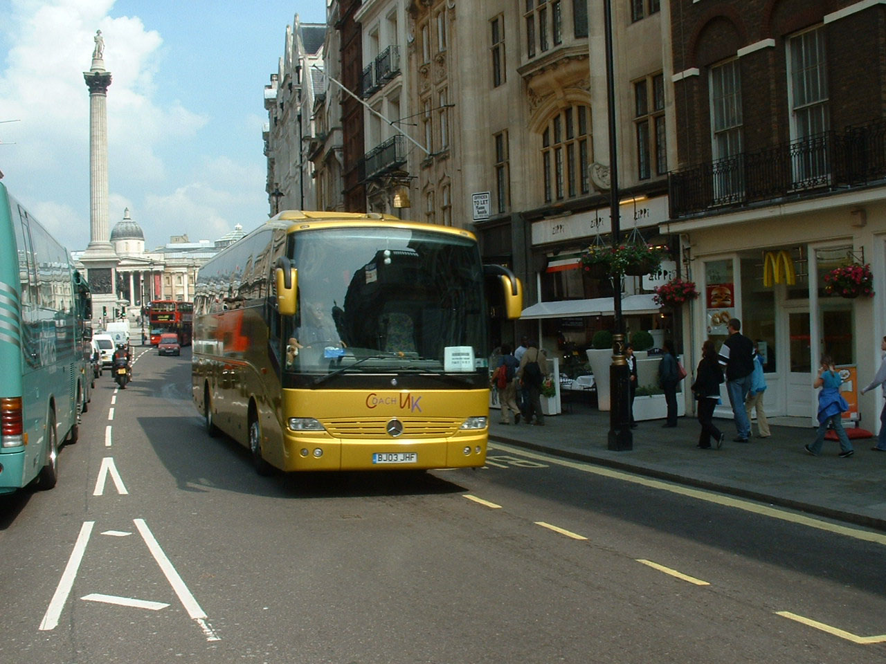 No mistaking the location of this Mercedes 1836RL, BJ03JHF, of Coach UK in the city in June 2007.