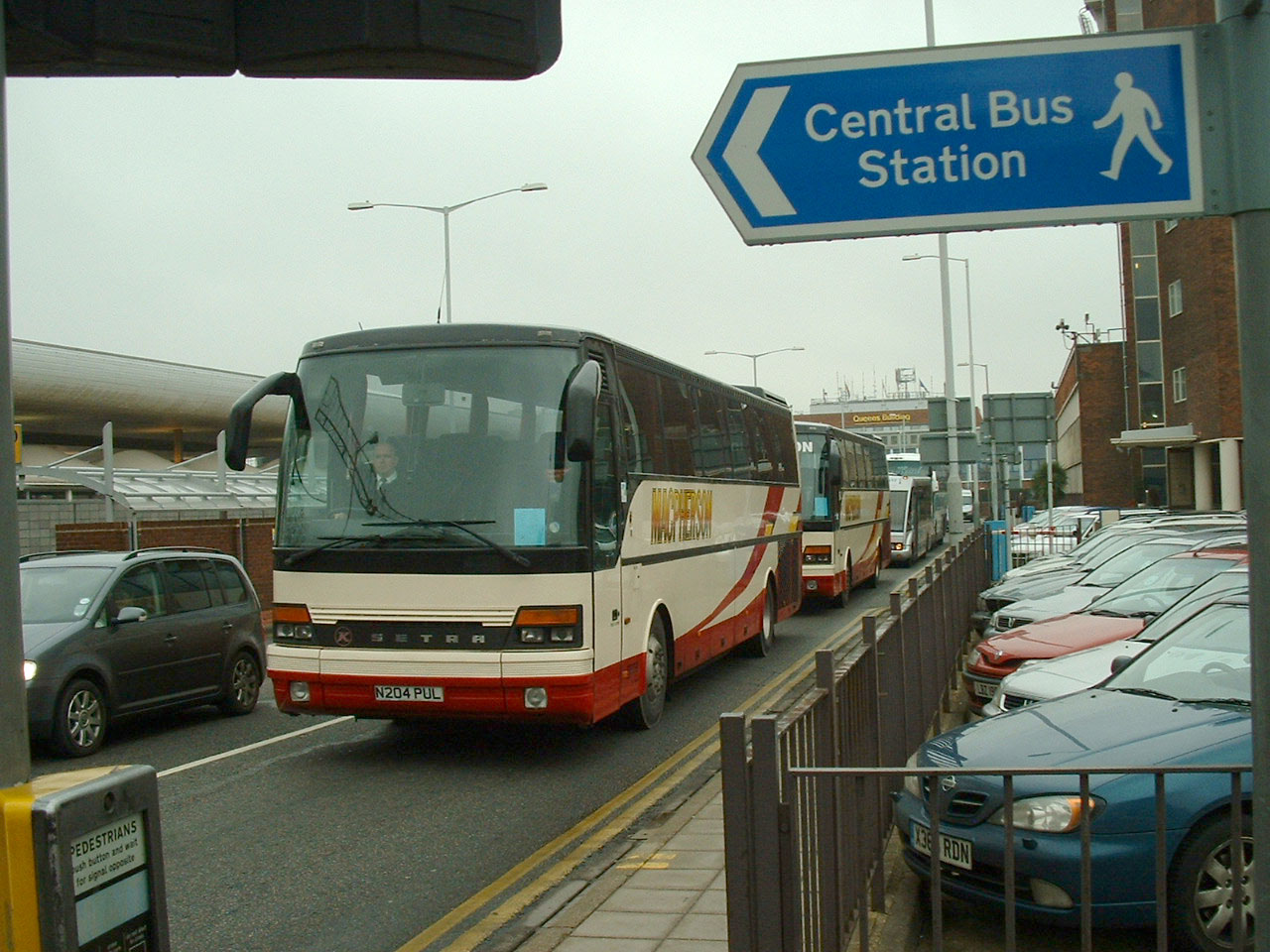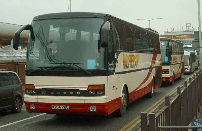 Heathrow Airport, February 2006 and a pair of Swadlincote based MacPhersons' ex Redwing Setras circle the terminals. Setra S250 N204PUL leads.