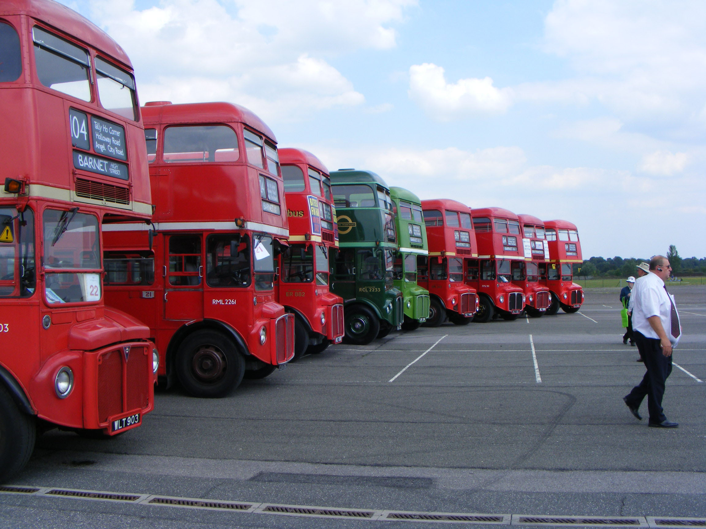 The 2011 North Weald rally coincided with the 50th anniversary of the original RMLs enetering service on 104. There was a special RML service on the 104 the preceding day and an RML gathering at North Weald on the Sunday. Here is RML2278 (CUV278C) arriving at North Welad with its 104 blinds set.