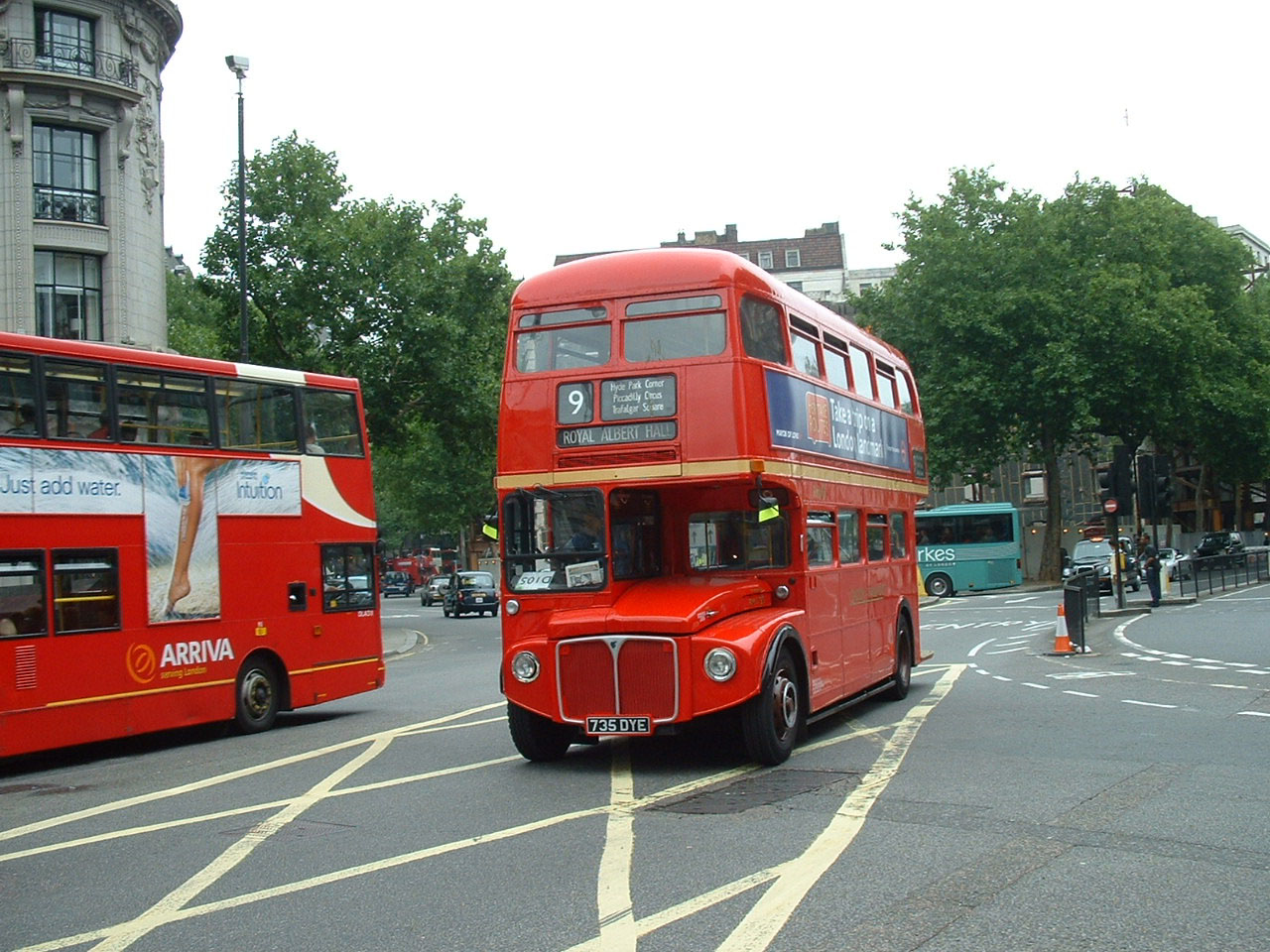 First has the contract to operate a small fleet of heritage Routemasters on route 9 in central London. The buses are from the batch extensively refurbished and rebuilt at considerable cost by Ken Livingstone, before he changed his mind in favour of bendibuses - doubtless he could have bought a fair few bendis for what he spent on the RMs! RM1204 is seen in service early in 2008.